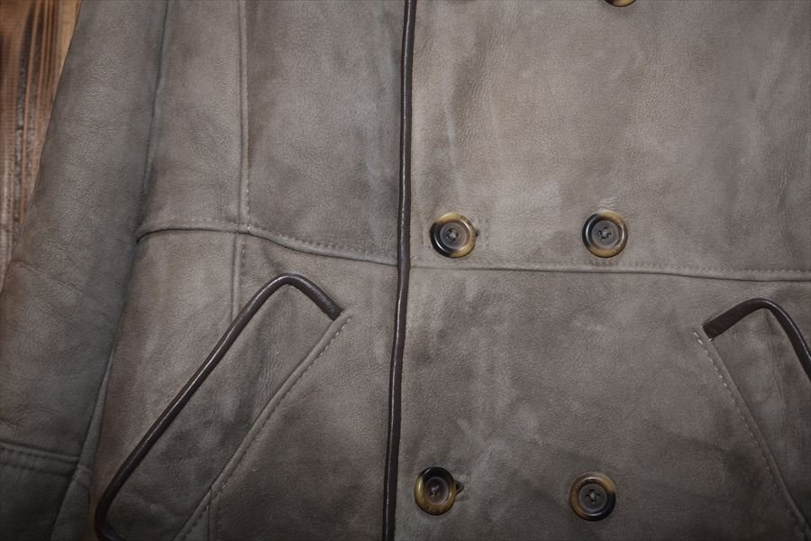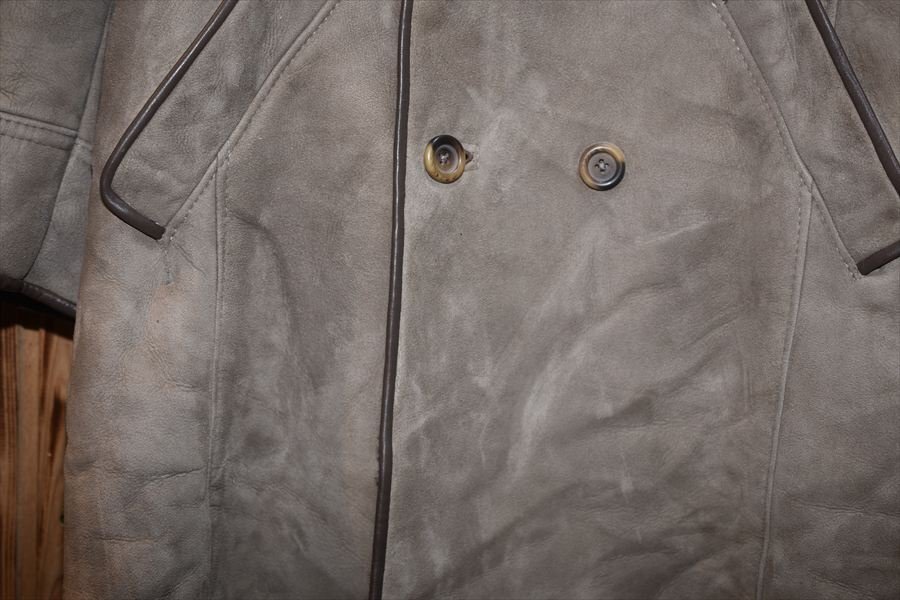 レベルが違う英国製★イタリア直輸入★良質 シープスキンムートン レザージャケット ダブルコート XXXL (SP-053)  メンズ ユーロ古着