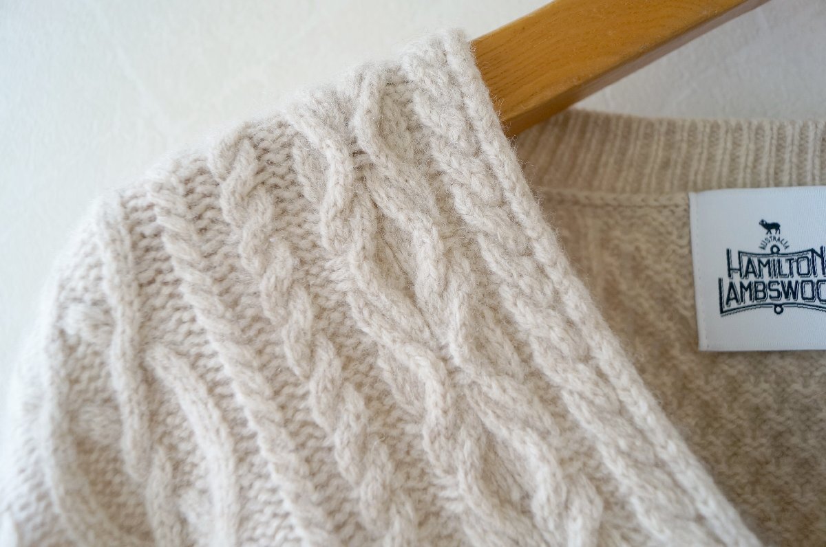 柔らかな肌触りで暖かい、ハミルトンラムズウールのニットです。