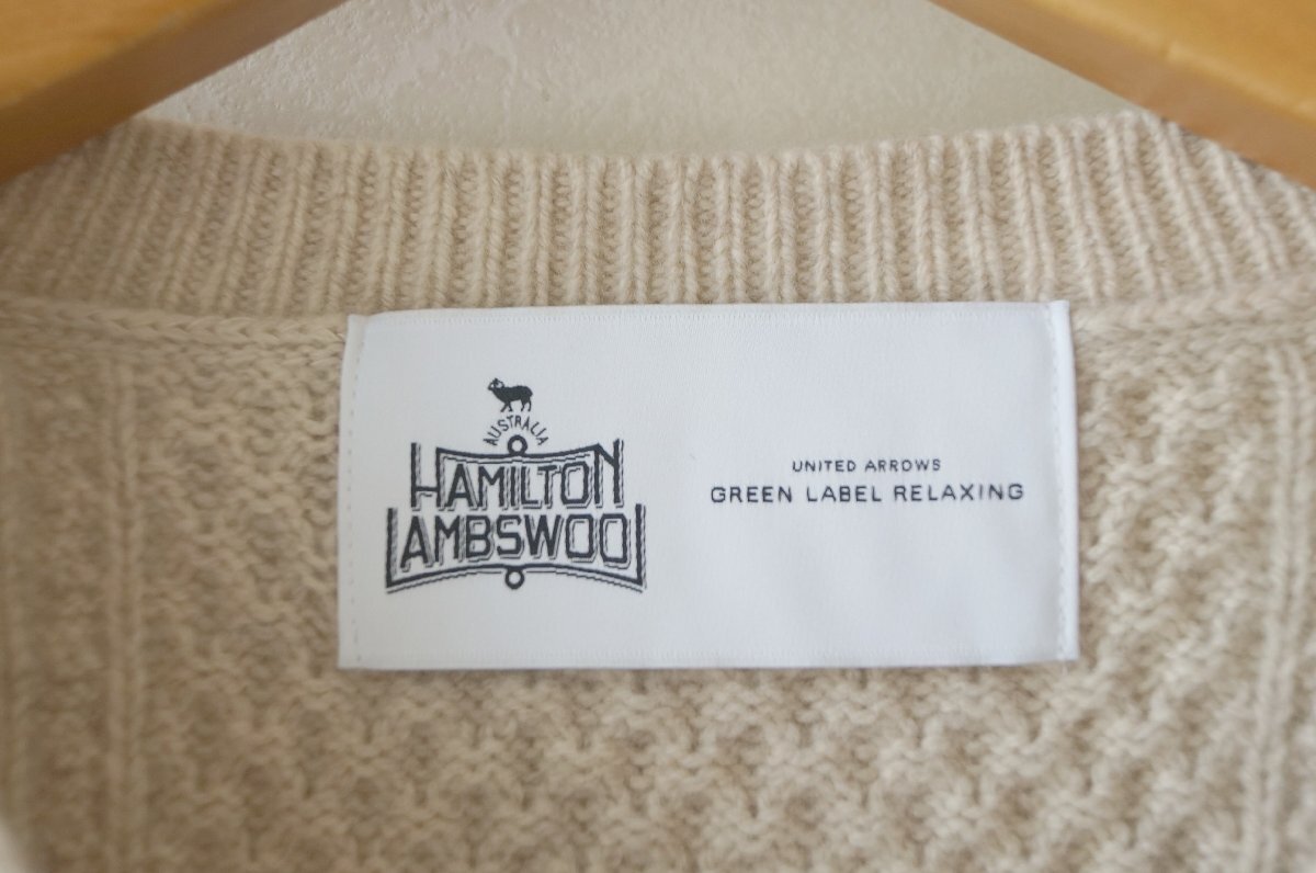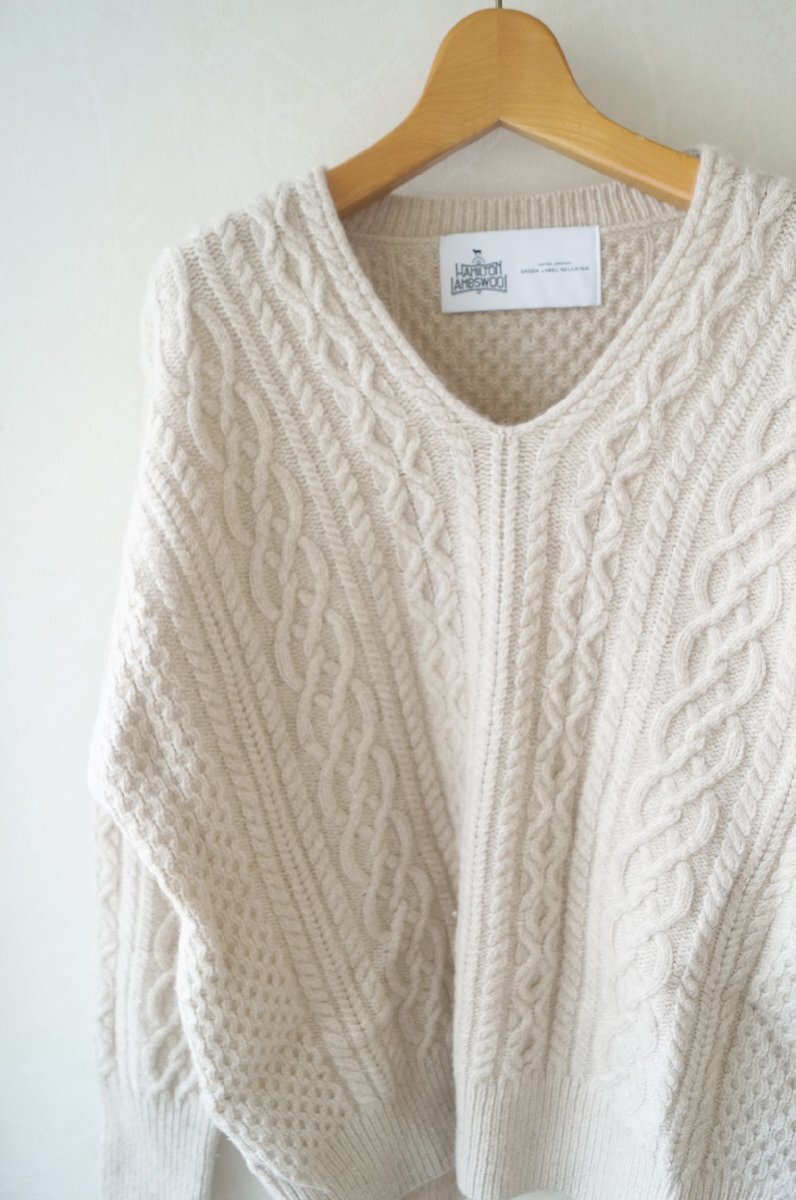 ★ユナイテッドアローズ green label relaxing HAMILTON ハミルトン *アラン Vネック プルオーバー ニット * 古着のgplus広島 2510t1