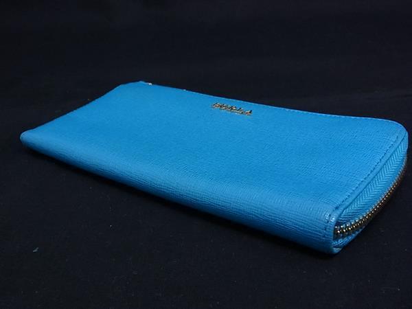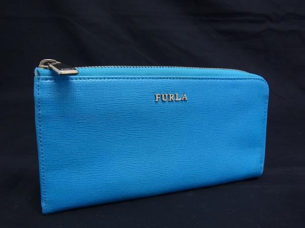 ■美品■ FURLA フルラ バビロン レザー L字ファスナー 長財布 ウォレット 札入れ 小銭入れ ブルー系 DJ3633
