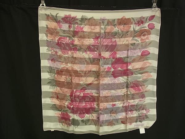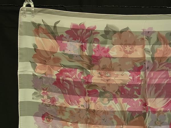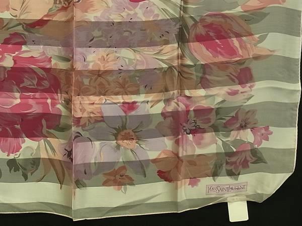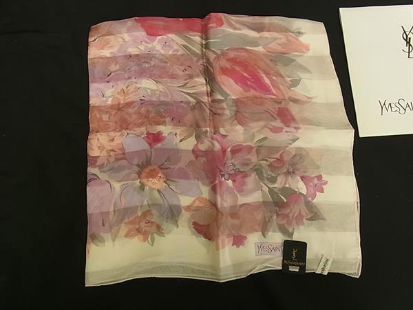 ■美品■ YVESSAINTLAURENT イヴサンローラン シルク100% フラワー 花柄 スカーフ ストール ショール アイボリー系×ピンク系 DJ1594