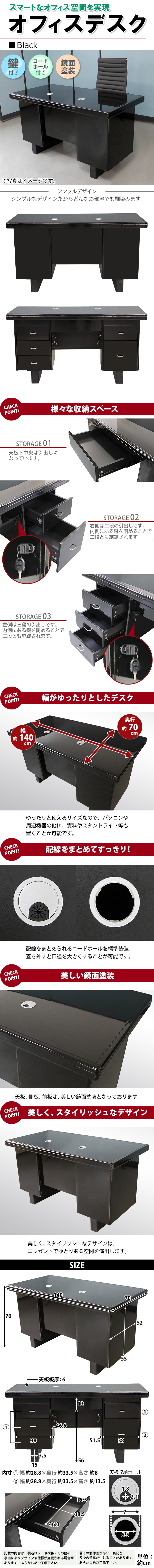 | 商品名 | 送料無料 両袖デスク オフィスデスク 鏡面 ブラック W約140×D約70×H約76 二段引出し 三段引出し 鍵付き 鍵 配線収納 コードホール ライティングデスク エグゼクティブ パソコンデスク デスク 会社 事務所 机 黒 81409bkb |