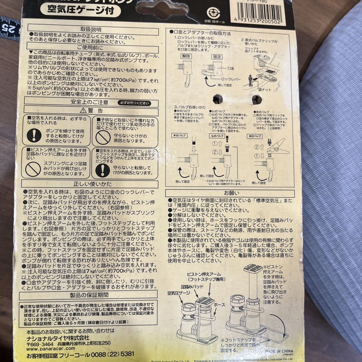 【Panasonic】パナレーサー 空気圧ゲージ付きフットポンプ 空気入れPanaracer ★FTP-YBG