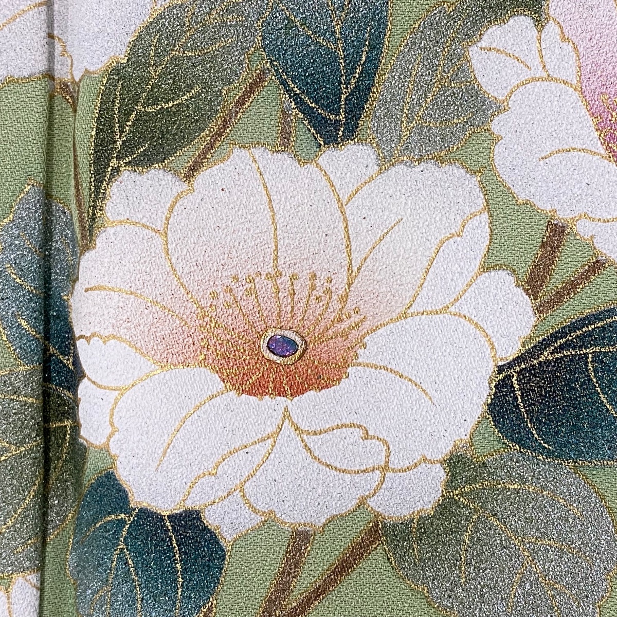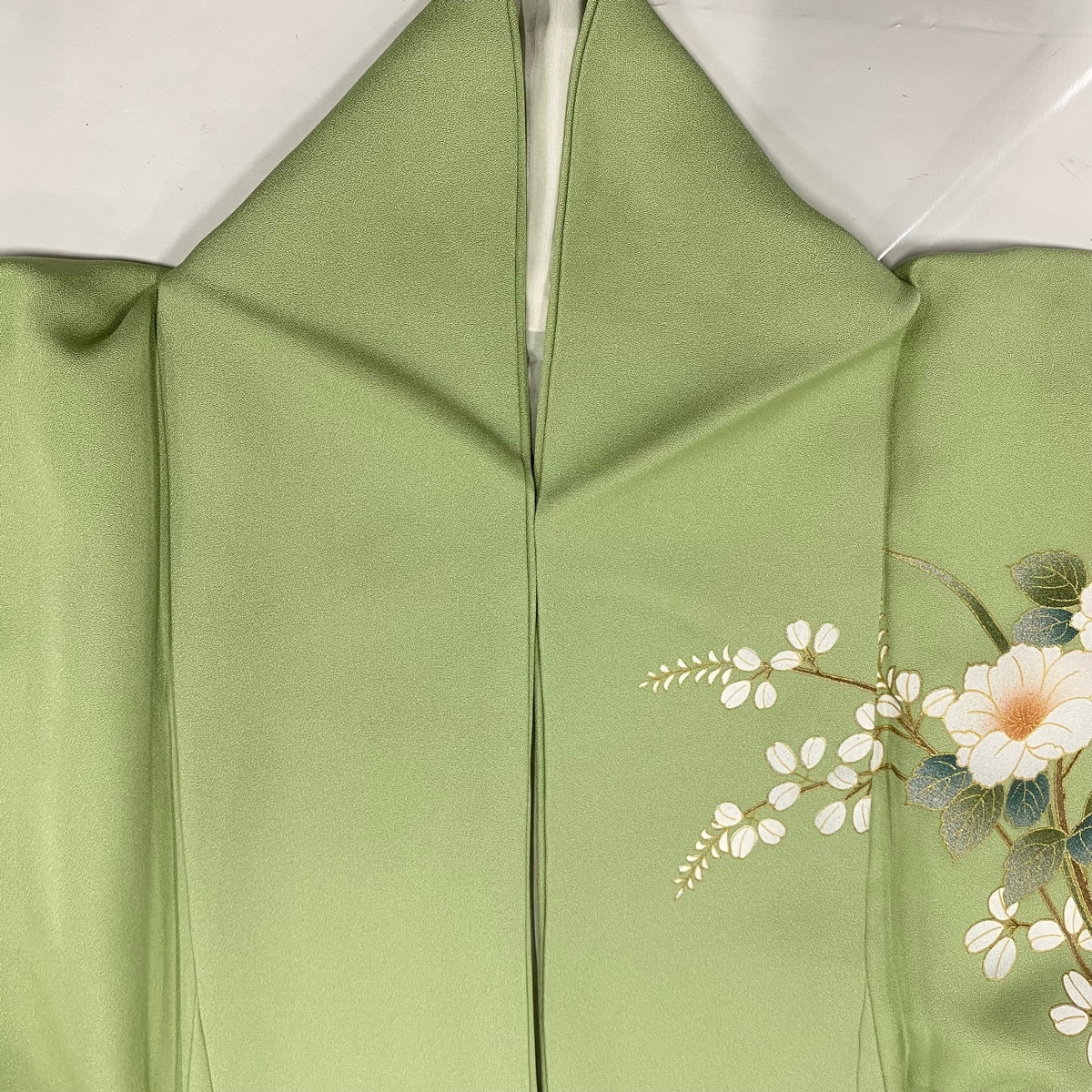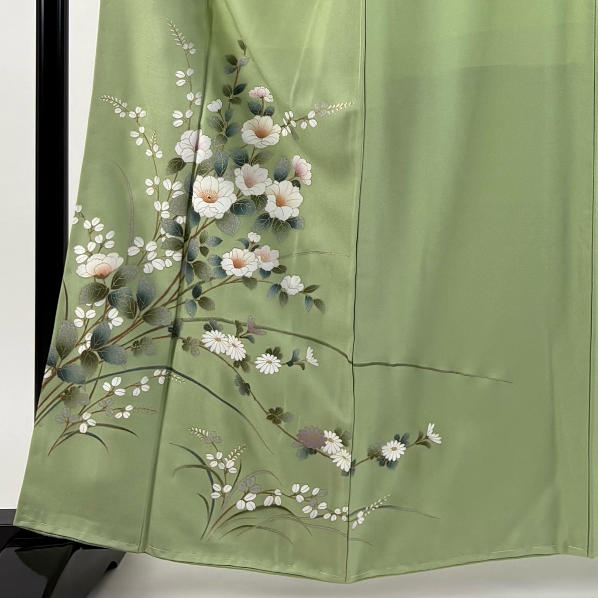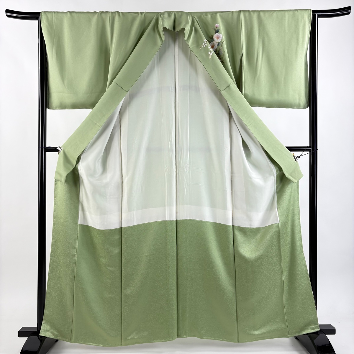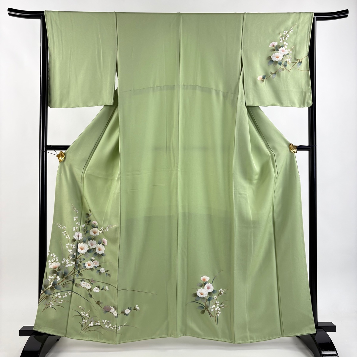 | 付下げ 秀品 枝花 草花 金銀彩 螺鈿 薄緑 袷 身丈162.5 裄丈65 M 正絹 【中古】 |