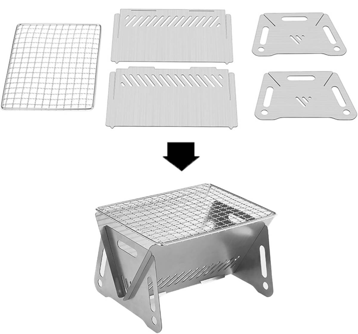 コンパクトに折りたためて持ち運びに便利なステンレス製バーベキューコンロです。