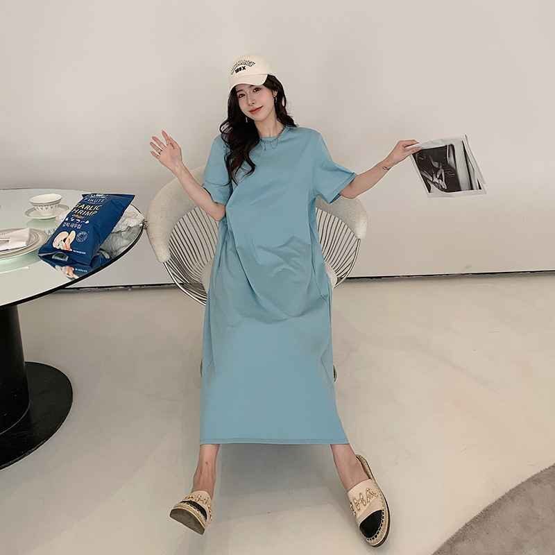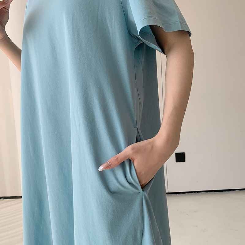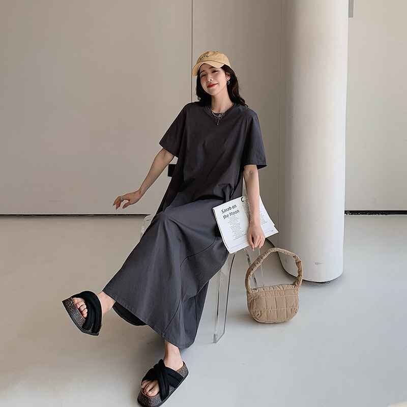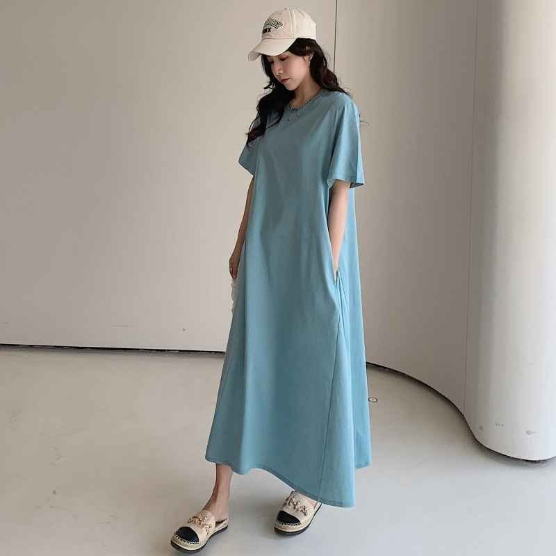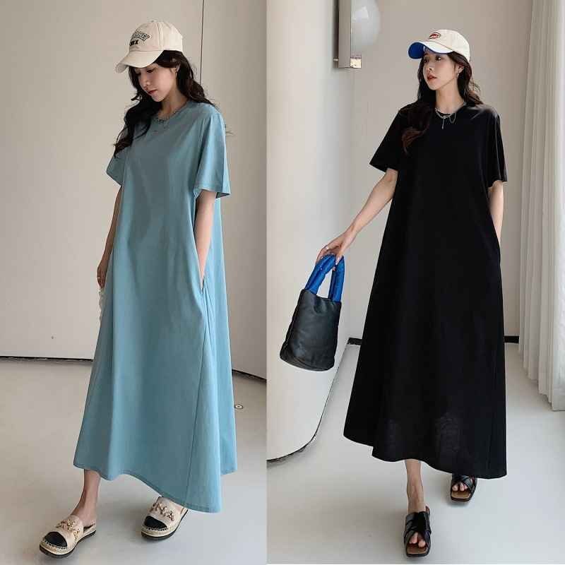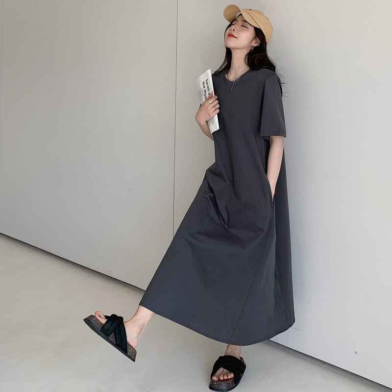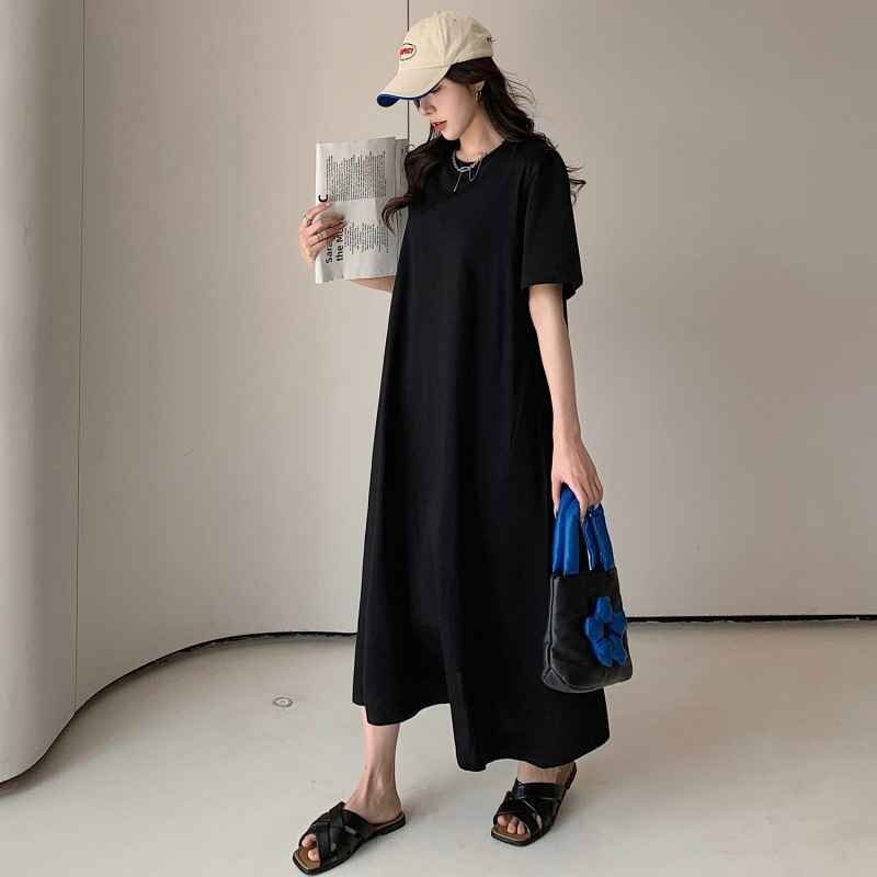 半袖ワンピース ロング丈ワンピース シンプル 夏 レディース 大きいサイズあり XL ブラック