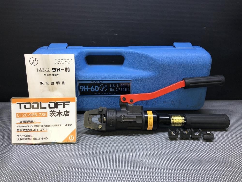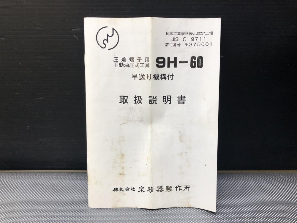 IZUMI 泉精器 ■商品名 手動式油圧圧着工具 ■型番 9H-60 |