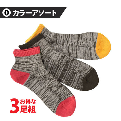 コーコス 防寒 ソックス 靴下【 SE-3303 】 鷹暖 クォーターソックス カラーアソート3足組●先丸● 25.0-27.0cm ※ネコポス発送