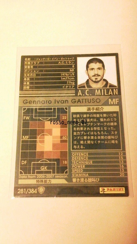☆WCCF2006-2007☆06-07☆281☆黒☆ジェンナーロ・イバン・ガットゥーゾ☆A.C.ミラン☆Gennaro Ivan Gattuso☆A.C. Milan☆