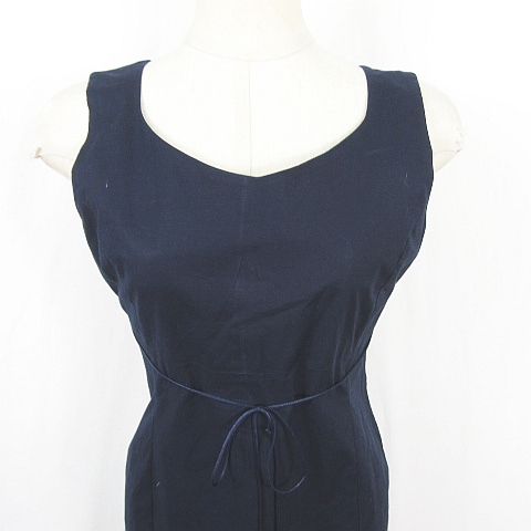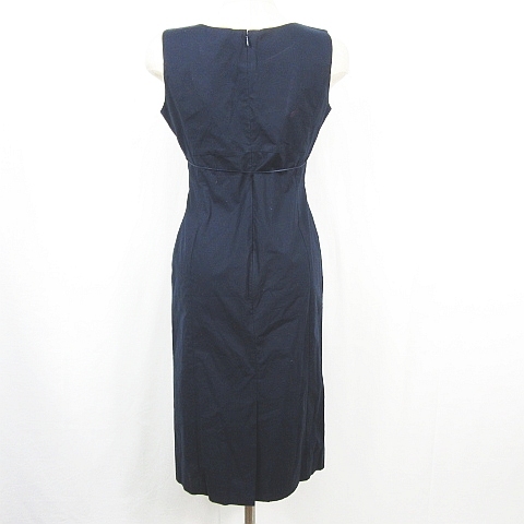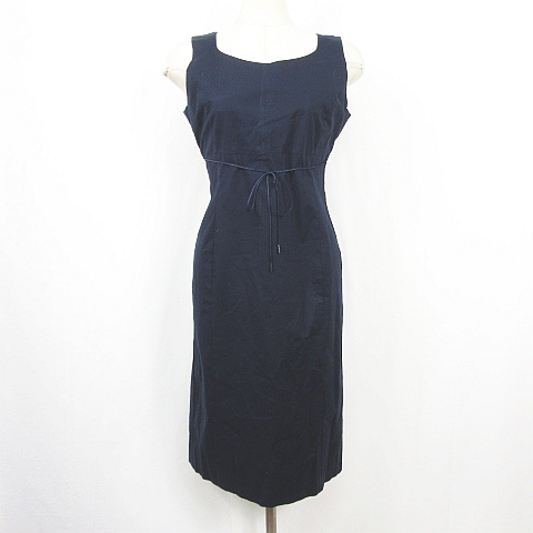 アンタイトル UNTITLED ノースリーブ ワンピース 膝下丈 ストレッチ 綿 9 ネイビー kz13531 レディース
