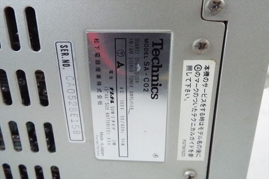 | ◆商品◆ メーカー---------Technics テクニクス 型式-------------SA-C02 付属品-----------画像に写っているものがすべてになります。 ◆外装ランク◆ 【 C 】 ◆状態◆ 中古品の為キズや汚れなどの使用感はご容赦ください。 9 通電しました 外装に傷、汚れ有り スイッチ、ダイヤル腐食有り AM受信確認済み FM電波環境不安定の為動作未確認 動作確認済。 音出し確認済。 レベル操作時にガリ音がありました。 現状品での出品となります。 調整やメンテナンスが必要となります。 【重要】配送送料と送料に送料が0円と表示される場合がございますが、出品画面に記載の送料が落札後にご精算されます。 | |||||||||||||||||