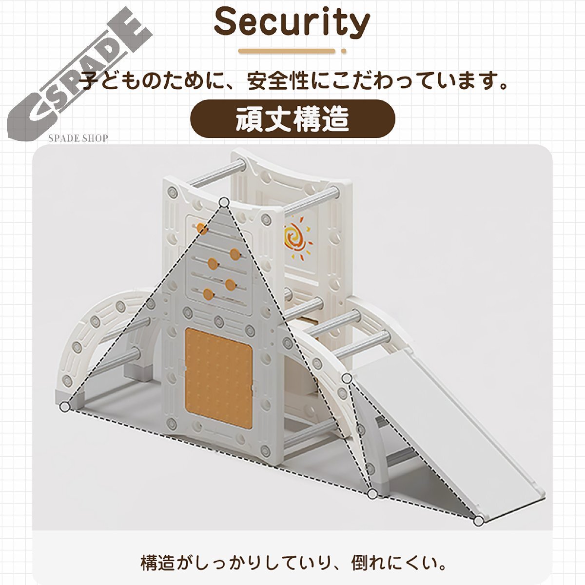 • 【SECURITY】子どものために、安全性にこだわっています。【頑丈構造】構造がしっかりしていり、倒れにくい。【高品質のHDPEを採用】無毒匂いなし。鋭い角がなく、表面をツルツルにささくれなどはなく、肌にやさしい【組立簡単】付属スパナでぐるぐる回して組立できる