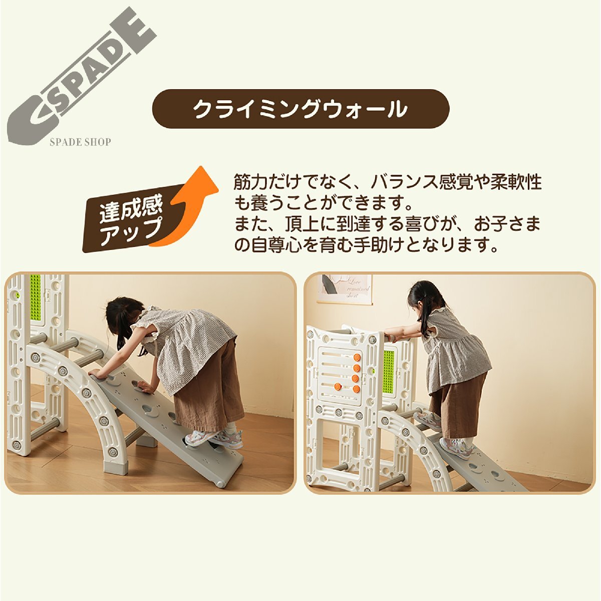 • 【 2WAYクライミング!】お子さまのさまざまな楽しみを満たします。自分の力で登ったり下りたり室内でも身体を動かして楽しめる。ジャングルジム お子さまの自立心と運動能力を高めるために開発されました。集中力を高め、四肢の協調性を向上させ、バランス感覚を鍛えます。クライミングウォール 達成感アップ筋力だけでなく、バランス感覚や柔軟性も養うことができます。また、頂上に到達する喜びが、お子さまの自尊心を育む手助けとなります。