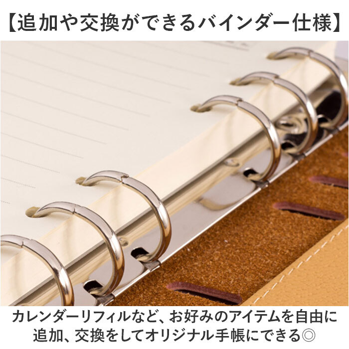 | 商品説明 | ・・【ペンやカードを収納できる◎】 ・高級感のあるシンプルデザインが嬉しい「A5システム手帳」が登場。 ・【ビジネスシーンにぴったりの1冊】 ・表紙の内側に、カードや名刺、ペンを収納できるポケットを搭載。会議はこれ1冊でOK☆ ・【追加や交換ができるバインダー仕様】 ・カレンダーリフィルなど、お好みのアイテムを自由に追加、交換をしてオリジナル手帳にできる◎ ・【全シーンに対応できるシンプルさ】 ・ビジネス、フォーマル、休日、習い事など、どんなシーンでも使えるのが嬉しいポイント。 ・【洗練された高級感を演出】 ・まるで本革のようなレザー調が魅力。高見えする素材で、ビシッと決まること間違いなし☆ ・【ちょうどよいA5サイズ!】 ・しっかり書けるのに、大きすぎない、扱いやすいA5サイズ。バッグに収納もしやすい◎ ・【パタッと閉じる、マグネットベルト】 ・持ち運び中に手帳が開かない、ベルトつき。マグネット式なので、パタッと簡単開閉。 ・【ページ内容】 ・・PERSONAL DATA、2024-2025年間カレンダー、罫線ノート ・※月別や日別のカレンダーはつきません。 ・【ポケット仕様】 ・ペンホルダー×1、カードポケット×4、窓付きポケット×1、フリーポケット×1 |