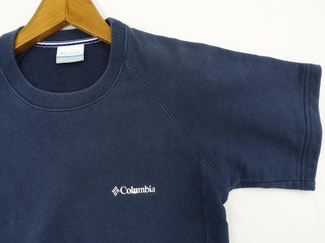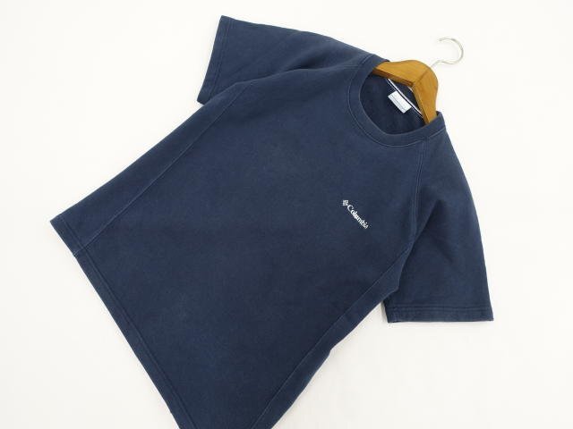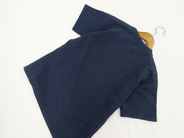 ラグランスリーブ 半袖 クルーネック トレーナー スポーツ S ネイビー地 ホワイト ロゴ刺しゅう