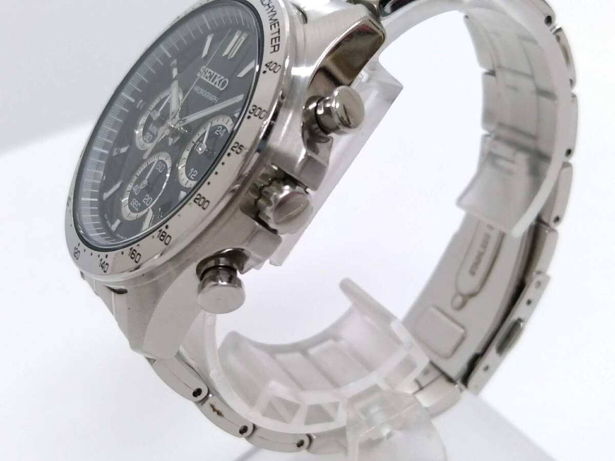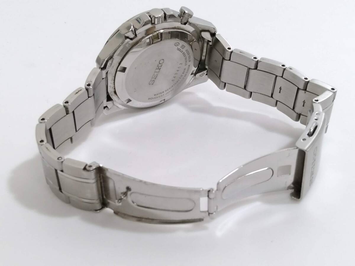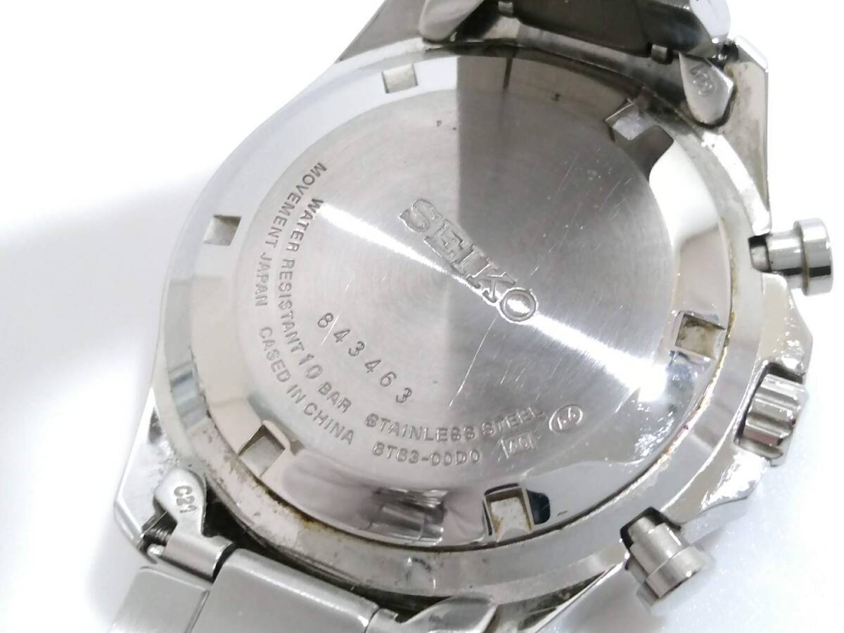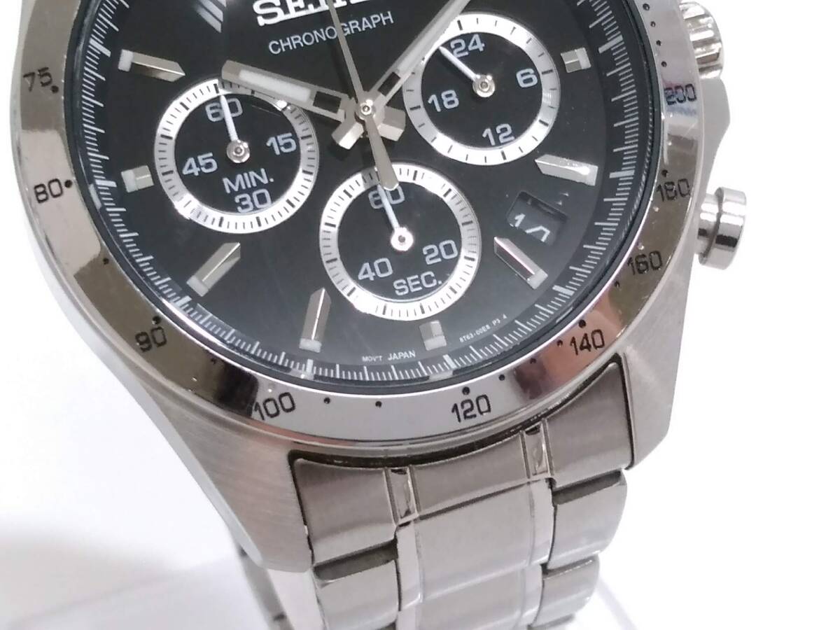 ※佐川急便の場合、離島など別途中継手数料がかかる地域が御座います。 その場合はお振込みを追加でお願いする場合が御座います事、 事前にご了承の程、宜しくお願い致します。 [商品名] 1円スタート 【美品】SEIKO セイコー CHRONOGRAPH クロノグラフ 8T63-00D0 デイト クォーツ 腕時計 [サイズ] ケース(リューズ込み)約5×4.4cm, 風防(ガラス/樹脂面)直径約3.4cm, ベルト幅約2cm, ラグ幅約0.9cm, 腕周り約19cm [素材] ステンレススチール他 [カラー] ブラック系×シルバー系 [型番] 8T63-00D0 [状態] 風防はキレイです。 金属部分に小キズ、スレ、細部に薄い汚れが御座いますが、