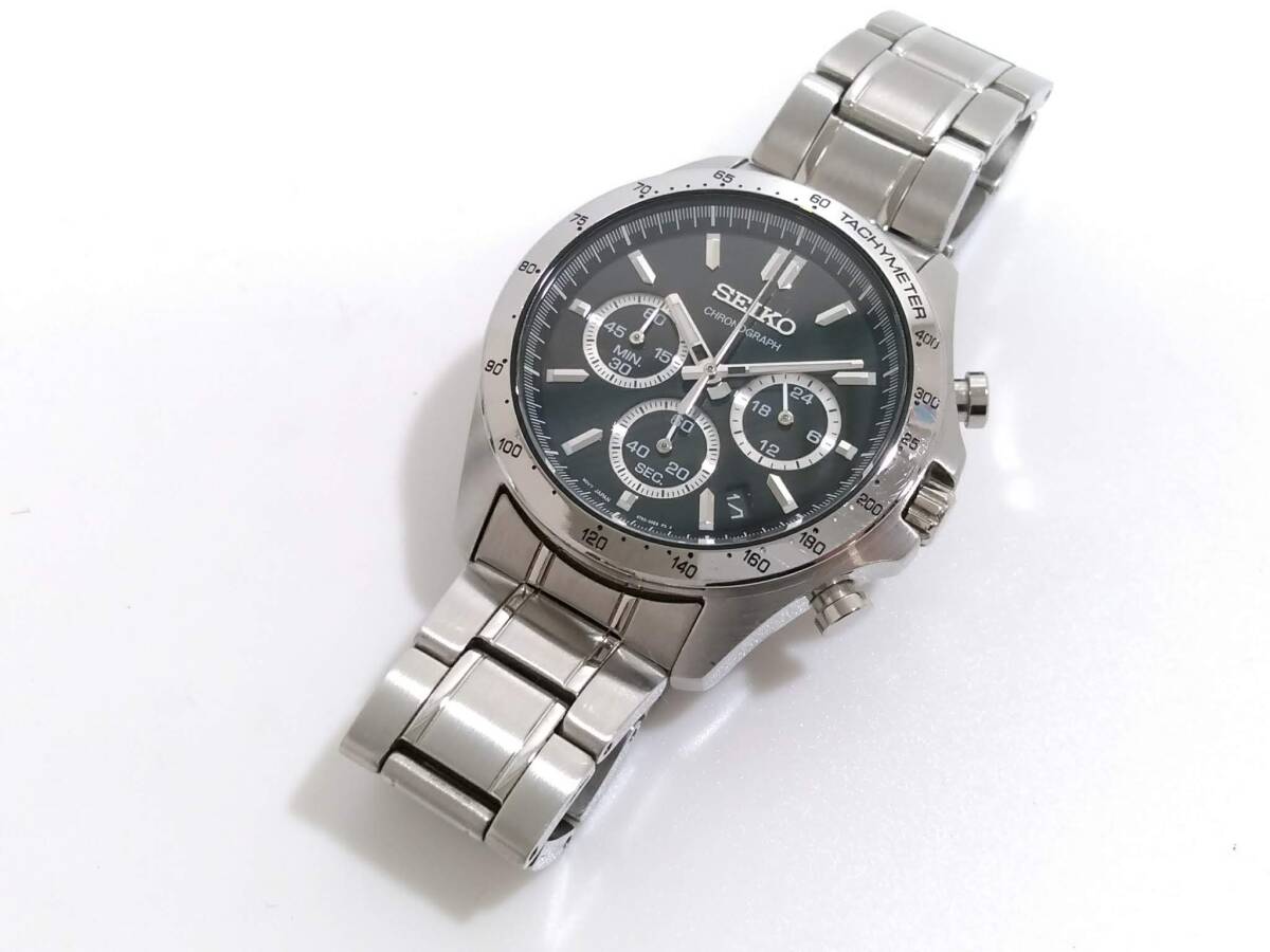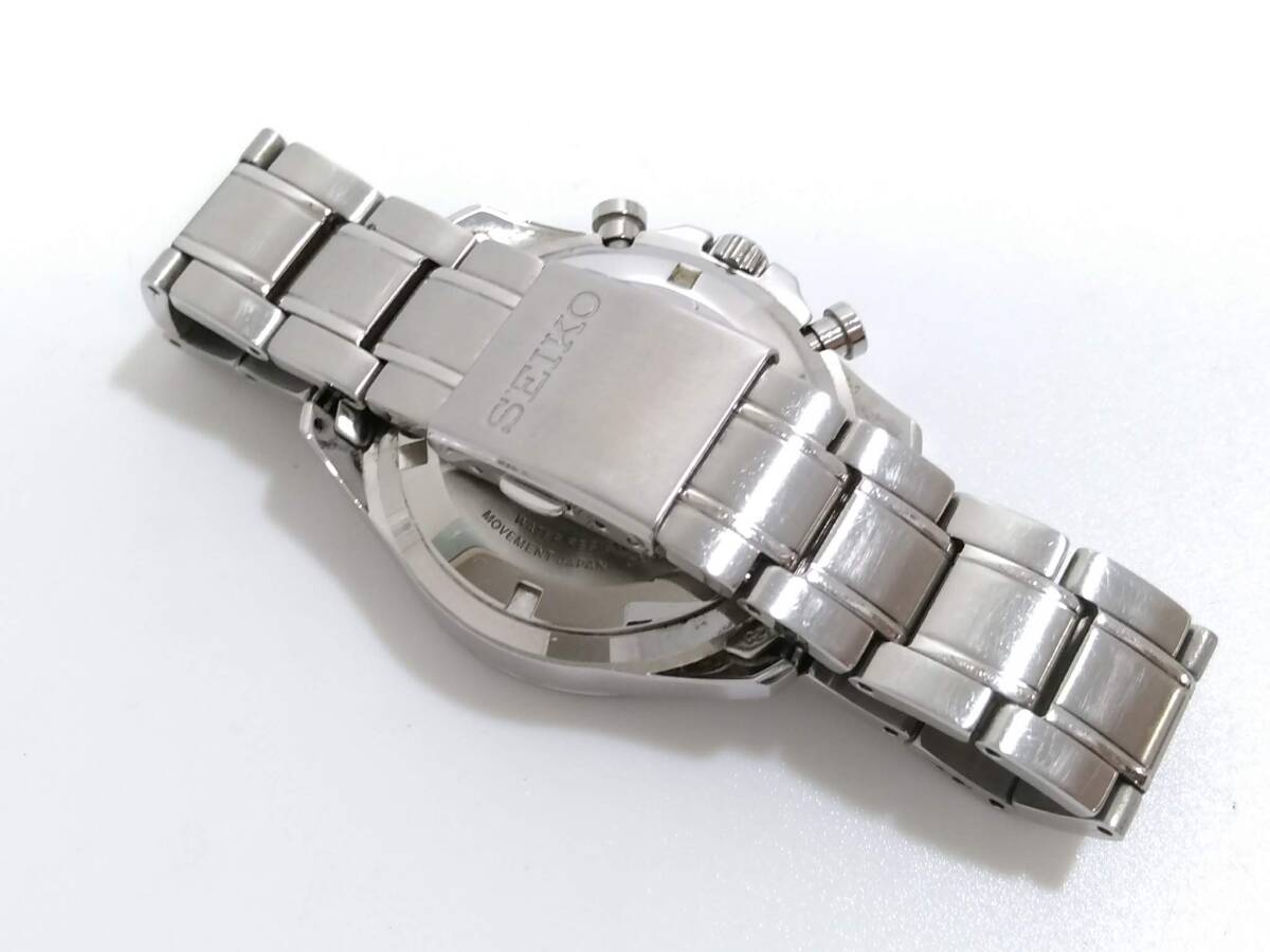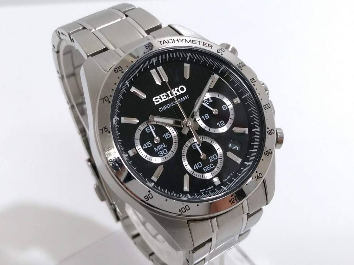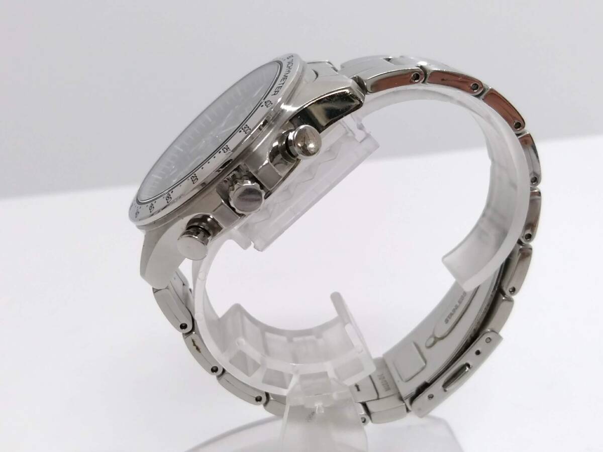 ※佐川急便の場合、離島など別途中継手数料がかかる地域が御座います。 その場合はお振込みを追加でお願いする場合が御座います事、 事前にご了承の程、宜しくお願い致します。 [商品名] 1円スタート 【美品】SEIKO セイコー CHRONOGRAPH クロノグラフ 8T63-00D0 デイト クォーツ 腕時計 [サイズ] ケース(リューズ込み)約5×4.4cm, 風防(ガラス/樹脂面)直径約3.4cm, ベルト幅約2cm, ラグ幅約0.9cm, 腕周り約19cm [素材] ステンレススチール他 [カラー] ブラック系×シルバー系 [型番] 8T63-00D0 [状態] 風防はキレイです。 金属部分に小キズ、スレ、細部に薄い汚れが御座いますが、