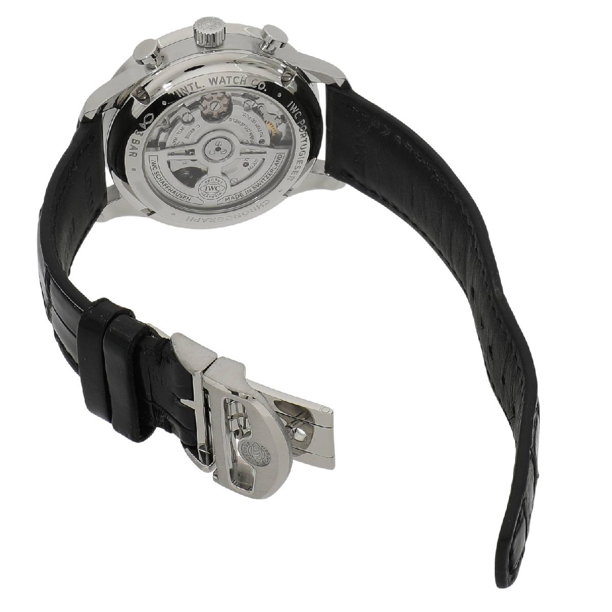 | モデルについて | 2019年の新作 ポルトガルの商人からの依頼を受け懐中時計をベースに制作され1939年に誕生したとされるポルトギーゼ。1993年に復活して以降、IWCの中でも高い人気を維持し続け、IWCの中でも長い歴史を誇るコレクションです。数あるラインナップの中でも1998年に誕生したクロノグラフモデルは特に人気が高いと言えます。文字盤外周のレイルウェイ、アラビア数字のインデックス、細く長いリーフ針などを特徴としており、ケースの幅ギリギリまでの薄いベゼルにより、ケース径の割りにダイヤルが大きく見えるのも特徴です。2019年のモデルチェンジでは、46時間パワーリザーブのIWC社製Cal.69355を搭載、ケースバックはスケルトン仕様、バックルは観音開き式へと変更されました。文字盤のカラーバリエーションが増え、更に人気と魅力が増しました。 |