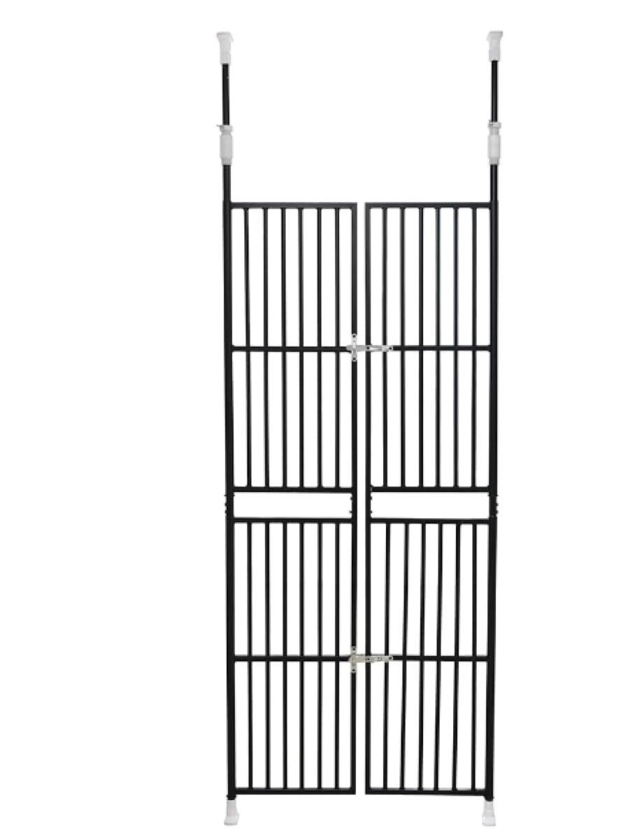 (OSJ) ペットゲート 脱走防止 柵 ロック付き ドア フェンス 留守番 保護 猫用 多頭飼い 多頭 スチール ペットケージ 廊下 玄関 飛び出し防止 ブラック