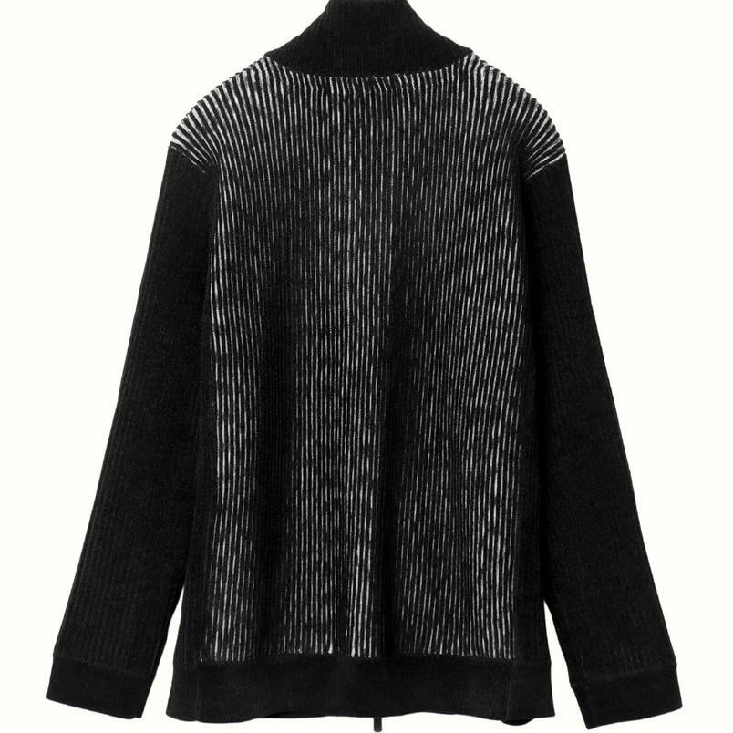■モールヤーンとかすり糸を組み合わせた変わり編みのスタンドZIPニット