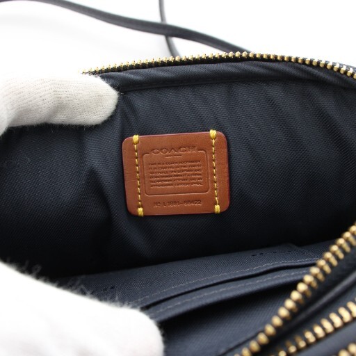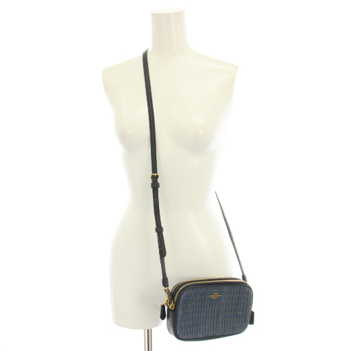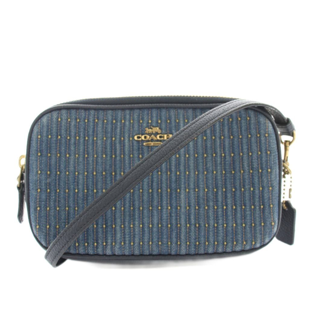 コーチ COACH デニムショルダーバッグ ダブルジップ レザー ロゴチャーム 紺 ネイビー 68422 /YT レディース
