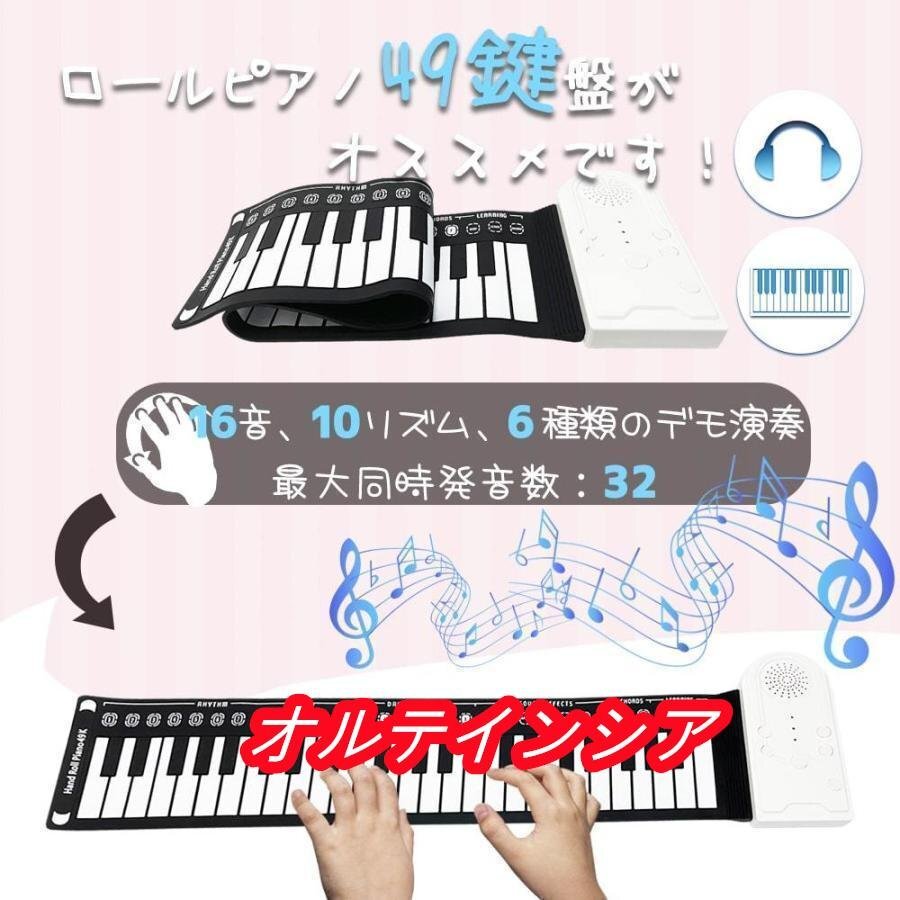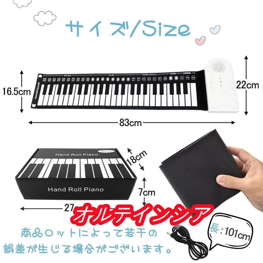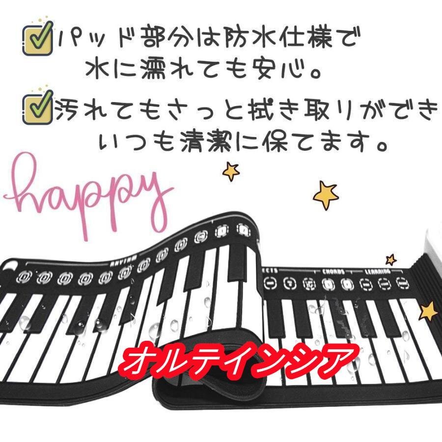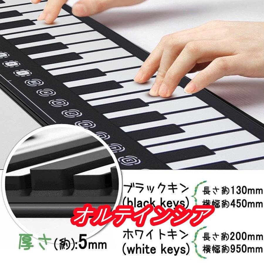 ※本製品は柔らかく巻いて収納できる素材で出来ているため、製品を置く場所により稀に「音が出ない」、または「反応が遅い」「一度鍵盤を弾くと、同じ音が2.3回鳴る」といった症状がでる場合があります。 テーブル等固く平面な台の上での使用をお勧めいたします。普通のピアノと素材が異なるため、鍵盤の真ん中を押して、