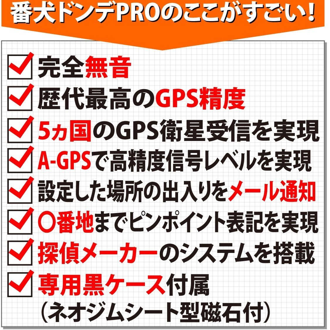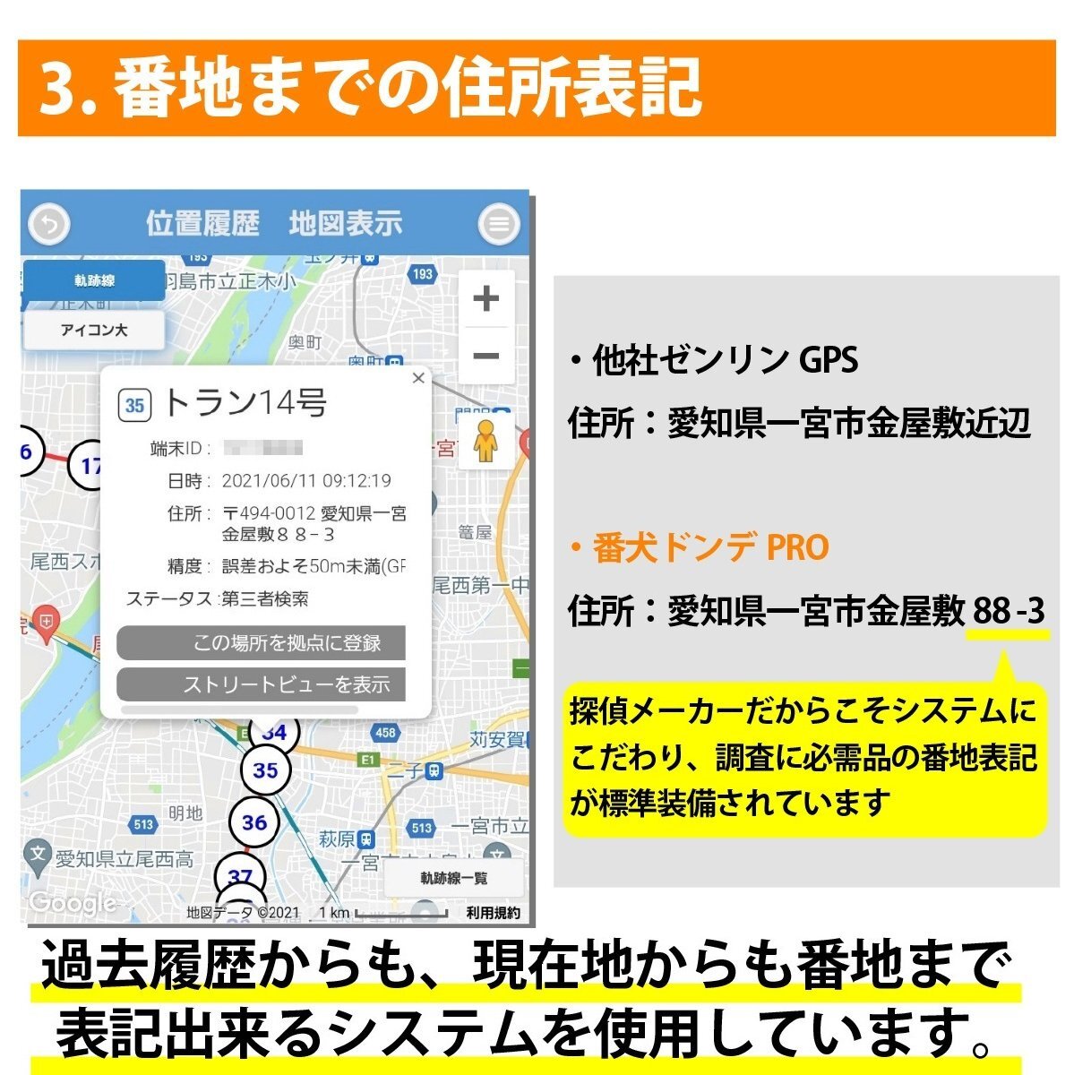 良好な電波状態の場合は1日50回検索で7日ほどバッテリーが持ちますが、GPS電波や携帯電波が弱い場所では、番犬ドンデPROが必死に位置を確認する為、電池の消耗が早くなる場合もあります。
