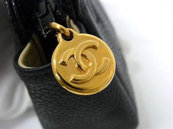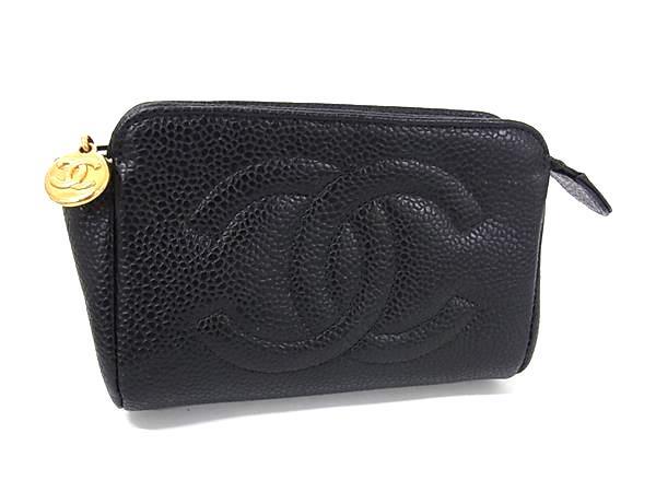 1円 ■極美品■ CHANEL シャネル ココマーク キャビアスキン メイクポーチ 化粧ポーチ レディース ブラック系 FR7089