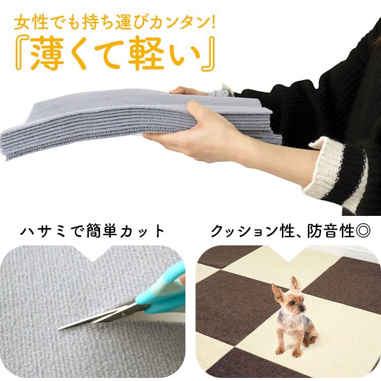 パパもママもペットも安心! 50cm 大判 パネルタイプのカーペットです。 大判サイズだから、敷く枚数も少なく、設置もラクラク! 吸着タイルなので置くだけ簡単設置! はさみで簡単にカットも出来るので、お部屋の形に合わせてレイアウト可能です! 裏面は滑り止め加工!はがしてピタッ!と吸着。 足音をやわらげてくれるので、子供部屋やフローリングのお部屋に最適です! 適度なクッション性が転倒時に衝撃を和らげてくれます! 冬は床下からの冷気をカット! 夏は冷房による温度を効率よく保ちます。 はがれにくいので掃除もラクラク!! ●商品仕様 カラー:グレー サイズ(約):幅500mm×奥行500mm×厚み3mm ※1枚 【商品内容】 パネルカーペット × 20枚 ※20枚1セットとなります。 |