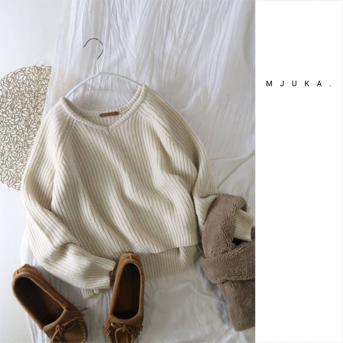 ミューカ MJUKA./レイカズン☆ウール混 Vネックニット Fサイズ☆E-M 6058