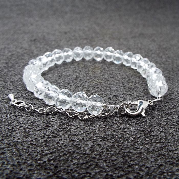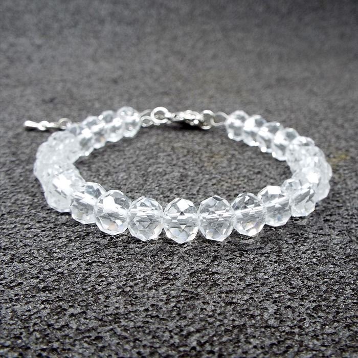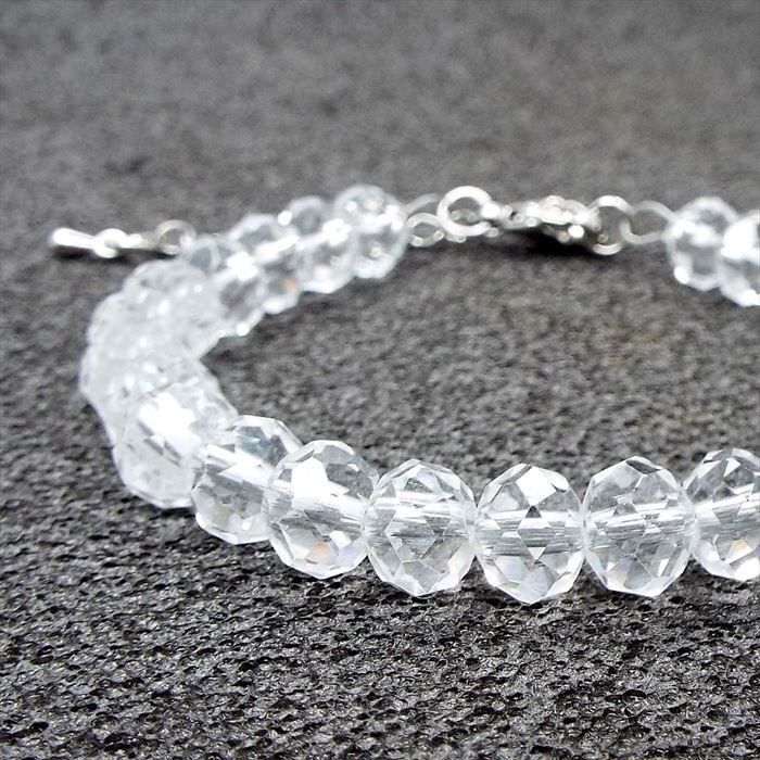 ガラスビーズ ブレスレット クリア 透明 約8×6mm クリスタルガラス ボタンカット 天然石 パワーストーン DRG1-10-8m1p