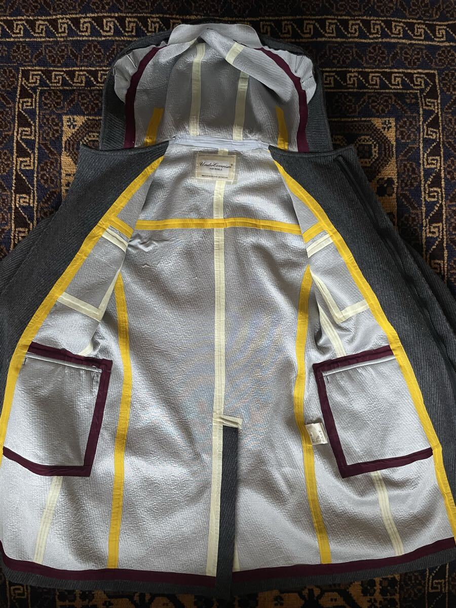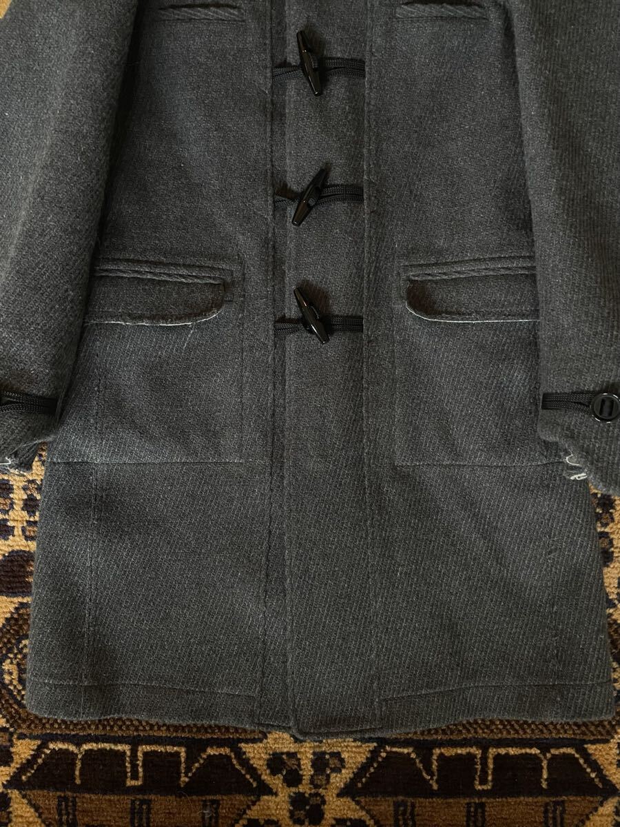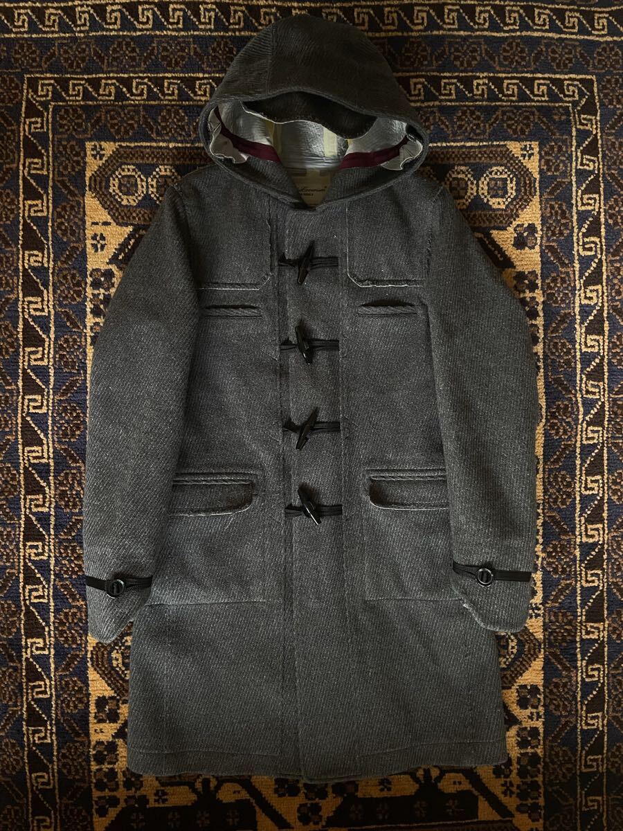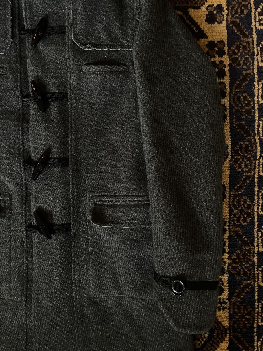 大きいフードにシンプルなトグルボタン、共布による肩の補強と大きめのハンドウォーマーポケットと、クラシックなダッフルコートの作りですが、最近復刻された初期のone and onlyのダッフルコートから続くほつれ加工、バイザーとイヤーマフ付きのフード、フロントダブルジップに二つの胸ポケット、袖口のバルタン星人のようなデザイン構造、カシミヤ混の上質で高密度なウール生地にハイテクな開発素材を裏地に張り合わせ、シームテープによる防水加工等、保温性、防水・防風性にも優れたハイスペックでデザイン的にも凝りまくってる一着になっています。