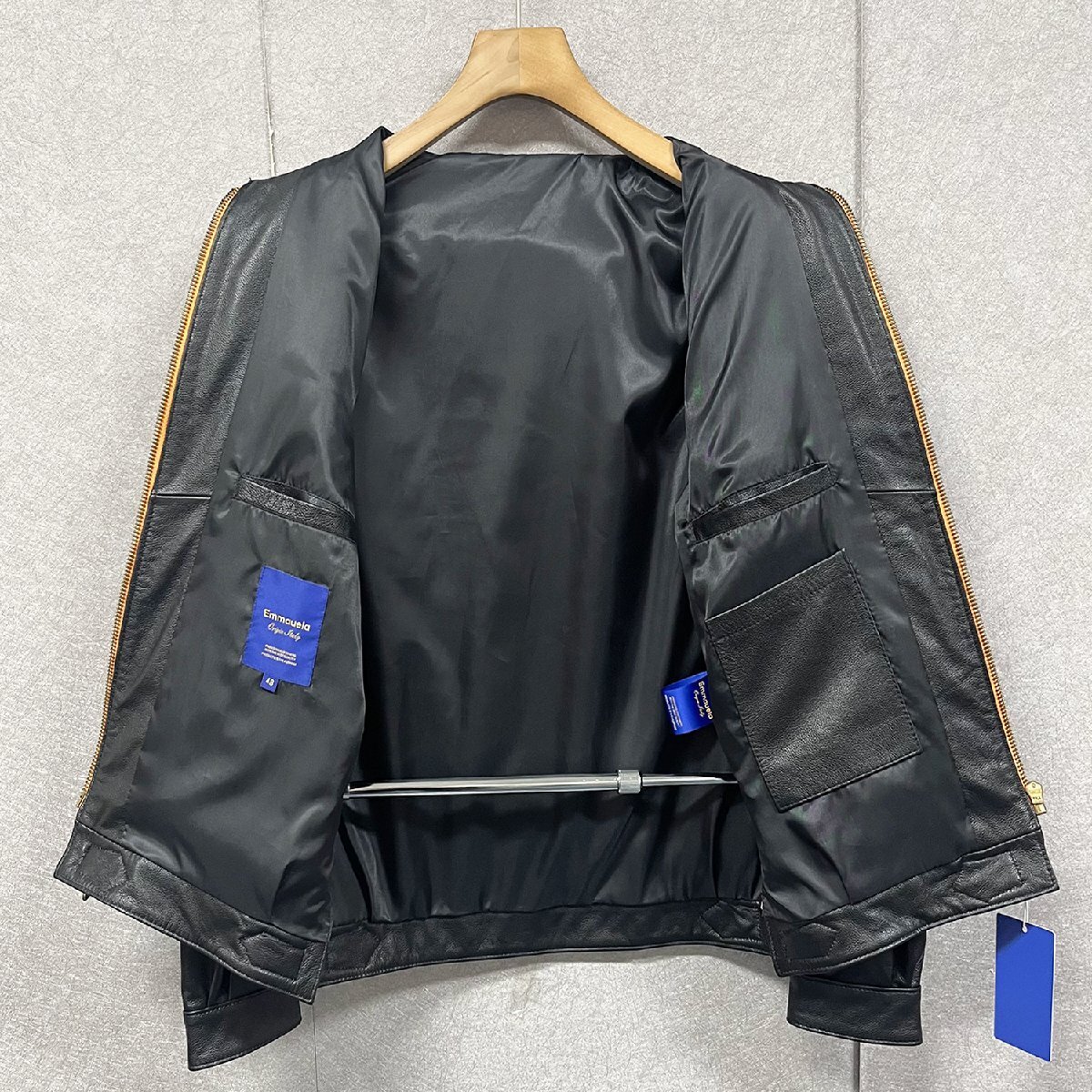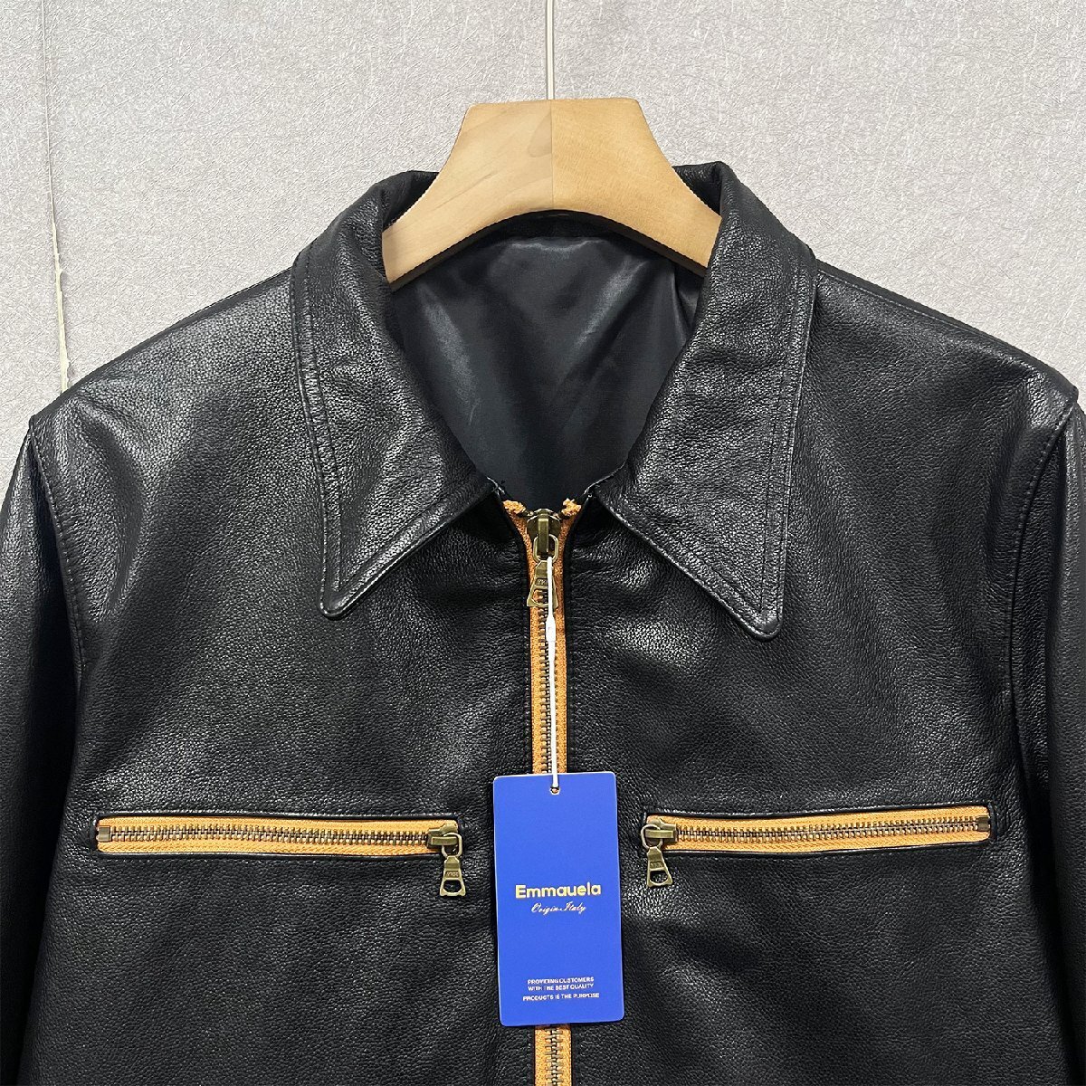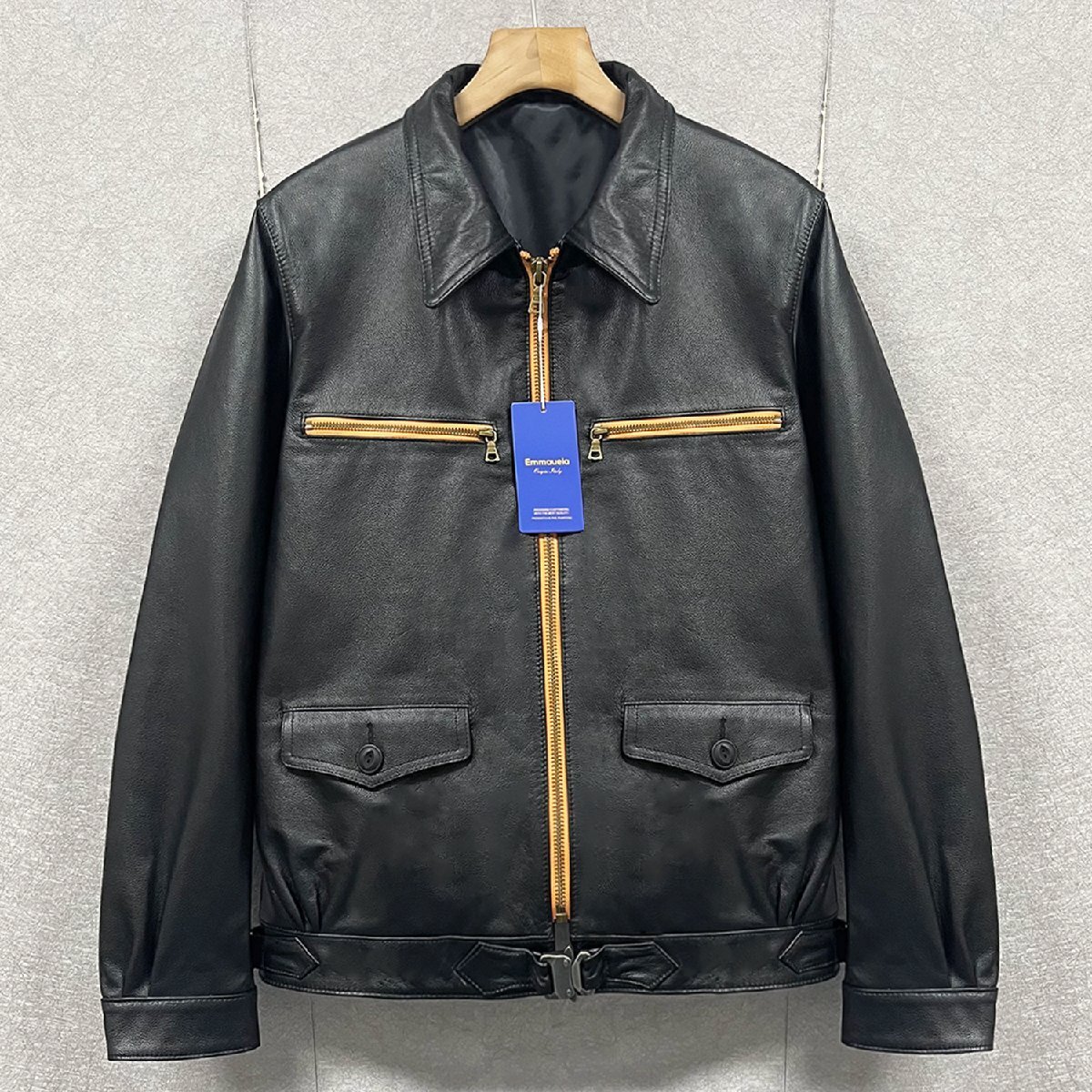 高級・レザージャケット 定価12万◆Emmauela・イタリア・ミラノ発◆牛革 レザー 柔らか 光沢 アウター ライダース 革ジャン バイク XL/50