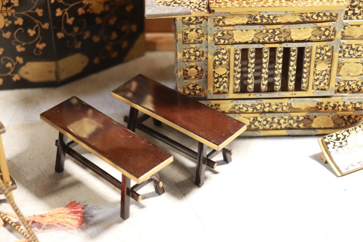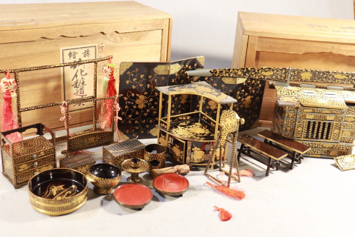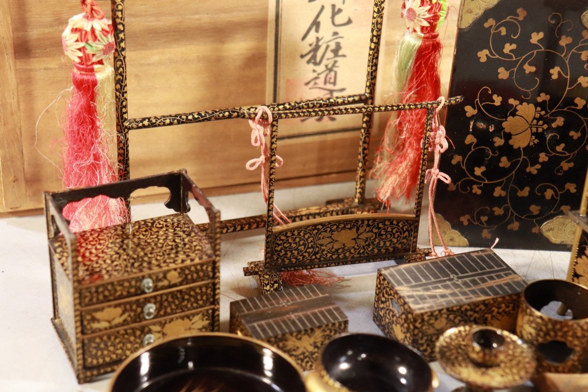 E774 雛道具 古雛 花嫁道具 化粧道具 おかご ひな祭り 蒔絵/54905