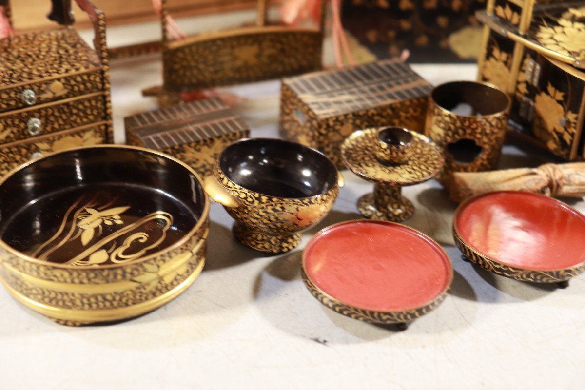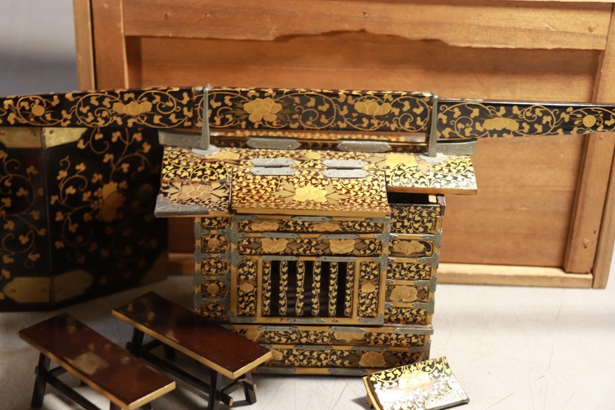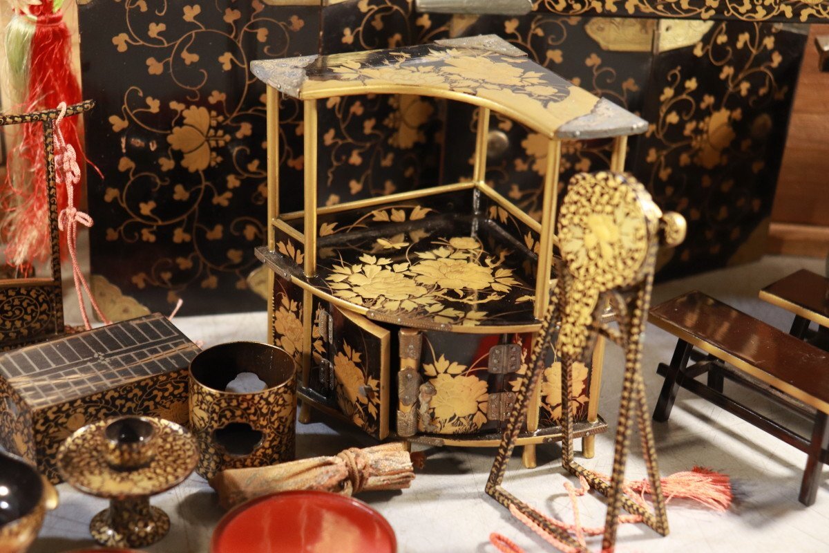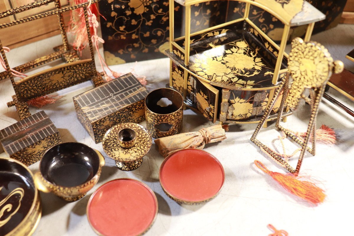 E774 雛道具 古雛 花嫁道具 化粧道具 おかご ひな祭り 蒔絵/54905