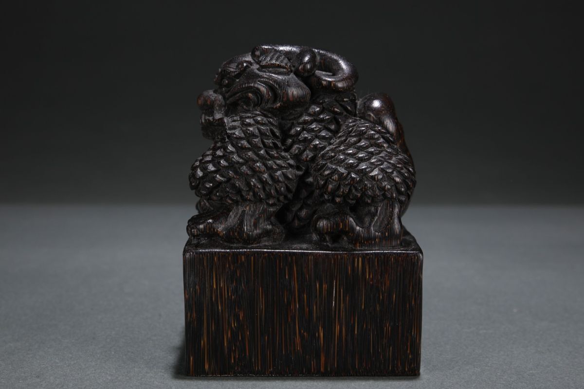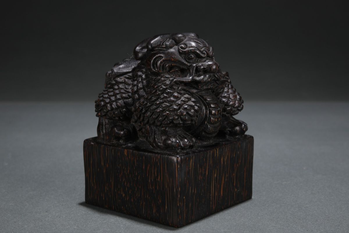 永し 清時代 獸角彫 瑞獸鈕 乾隆御覽之寶 印章 印鑑 印璽 極細工 置物擺件 古美術品 時代物 古董品 収集 旧家蔵出 中国唐物 A112