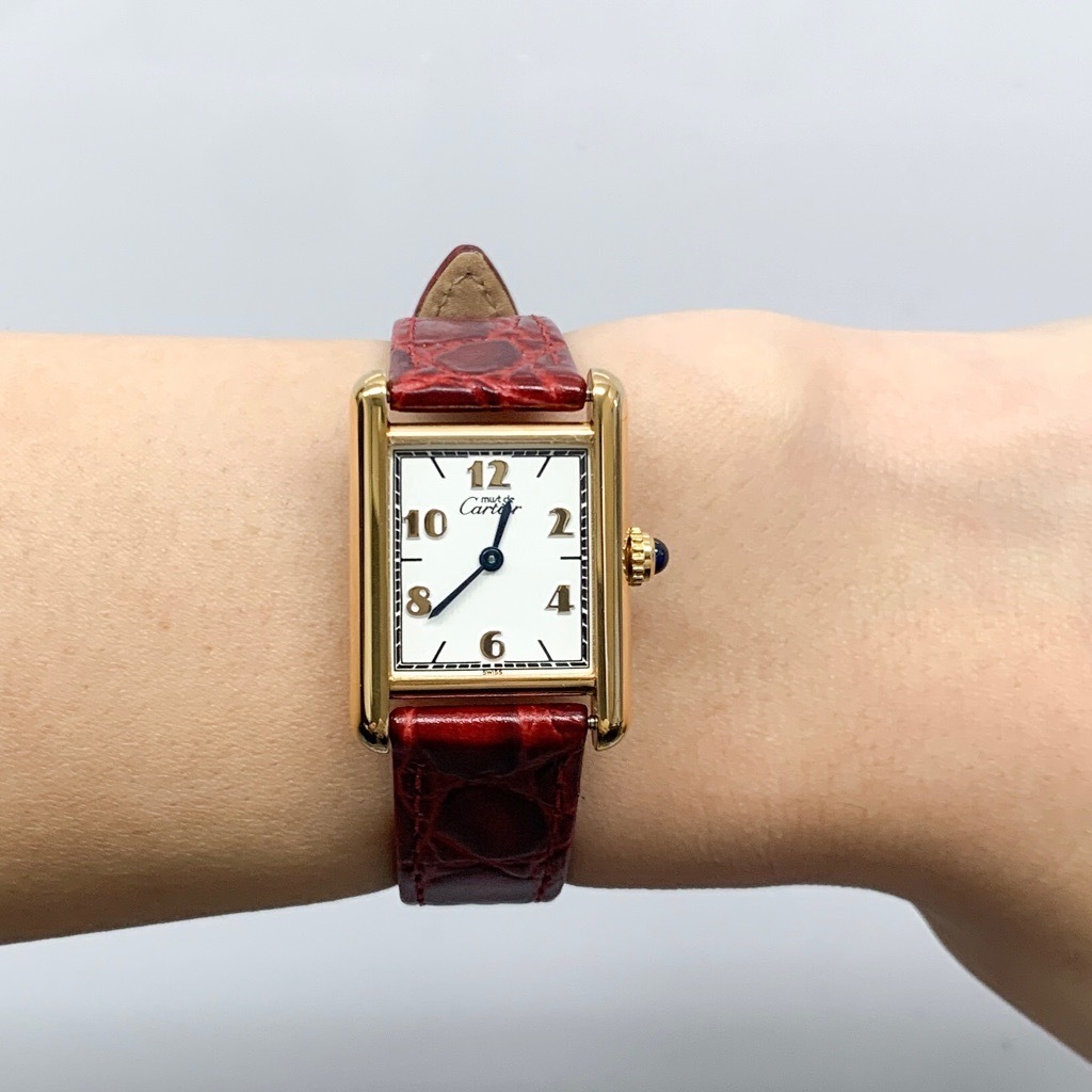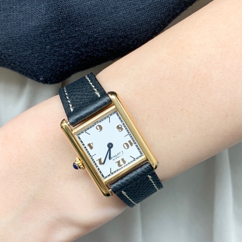 男女ともに支持の高いカルティエのヴィンテージウォッチ「マストタンク」。通勤からプライベートまでどんなシーンにも合わせやすいアイテムでSMサイズは女性のみならず男性からも人気のサイズとなっております。ゴールドに輝くアラビアの文字が身につけた人の美しさと可愛らしさを引き出すアイテム。カルティ保証書付きで当店職人、一級時計修理技能士による電池交換、点検、外装仕上済みで安心してご愛用いただけます。