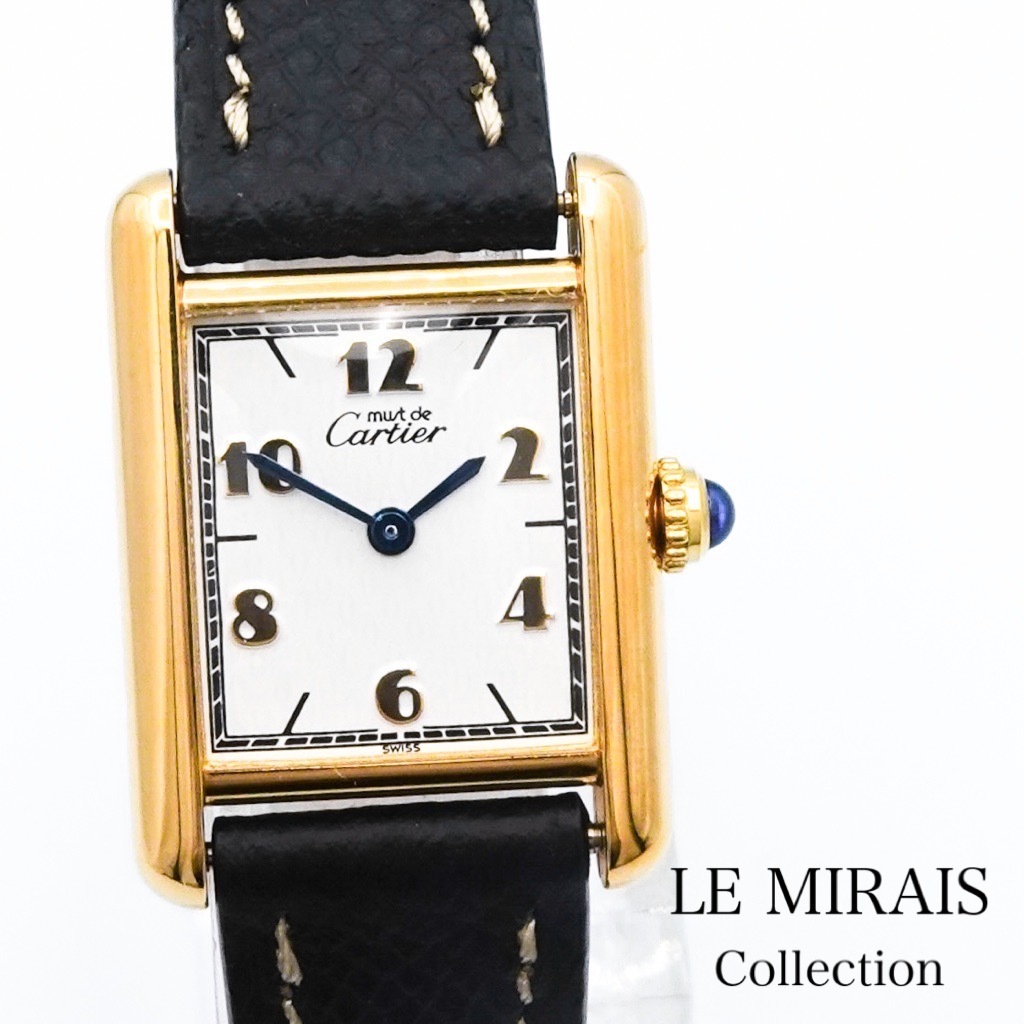 【保証書付】カルティエ マストタンク 飛びアラビア文字盤 SM ゴールド シルバー シルバー レディース 腕時計 CARTIER 時計