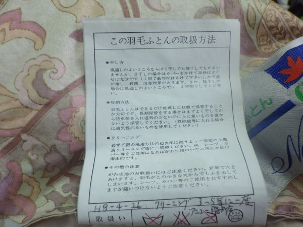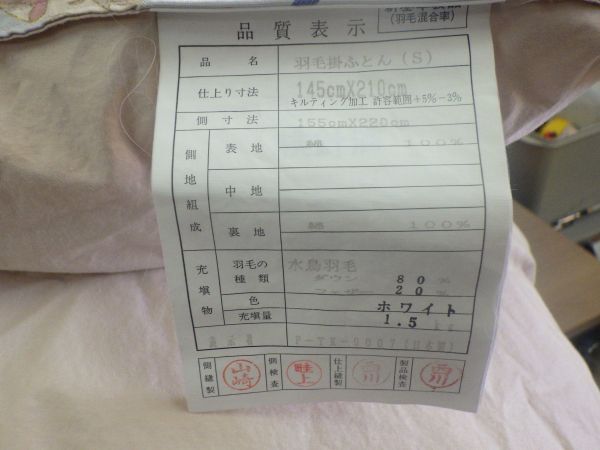 ★シングルサイズ 高級羽毛布団 155cm×220cm 1.5kg ダウン80% フェザー20% ピンク 羽毛掛けふとん 寝具 花柄 5