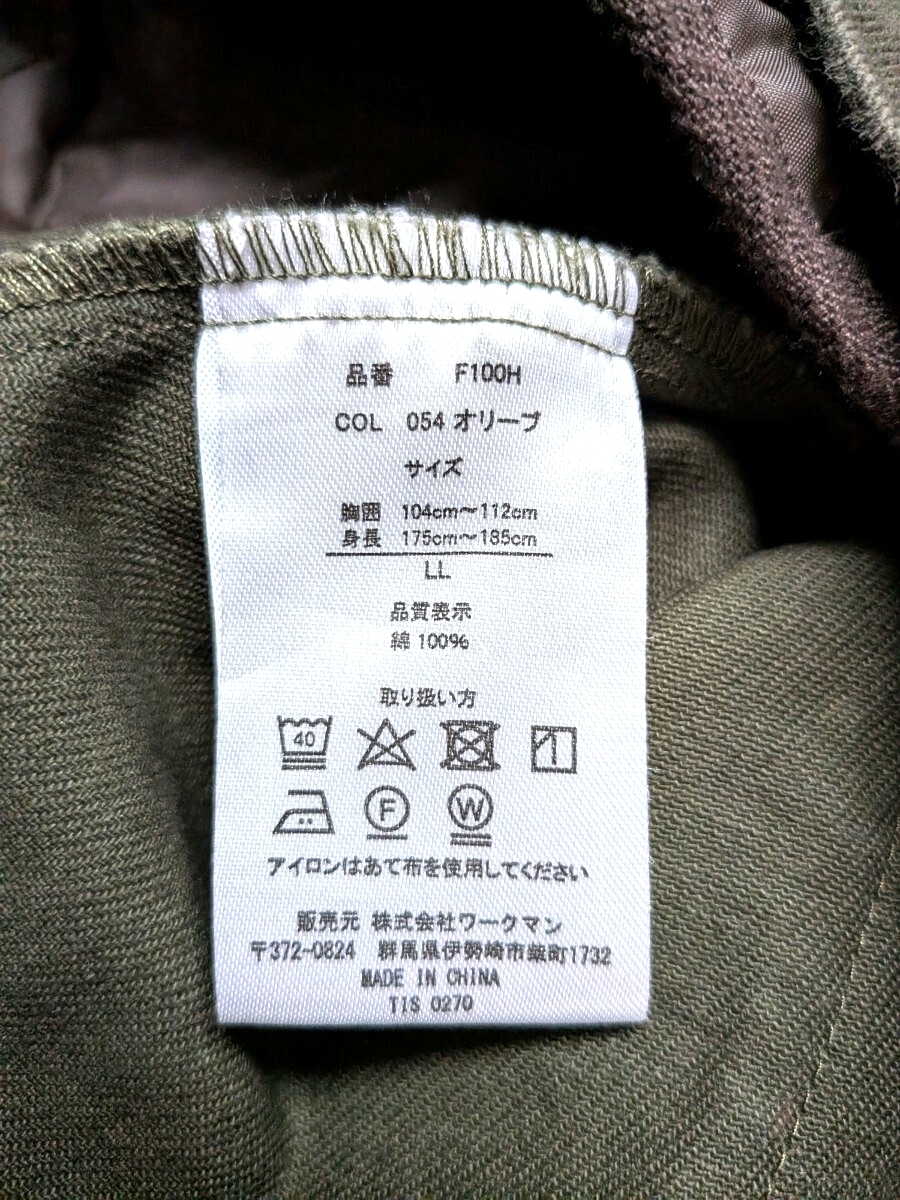 ワークマンのフィールドコアの「コットンキャンパープラス」です。人気のコットンキャンパーに内側にインナーが付いたタイプです。