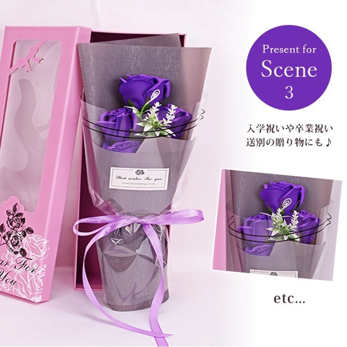 玄関やお部屋などに飾って優しいフローラルシャボンの香りも楽しめ、季節を問わず、その美しさを長期間に楽しめます。