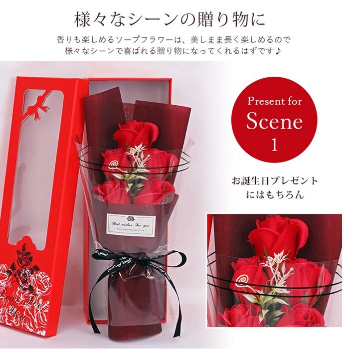 ソープフラワー バラ 5輪 枯れない花 花束 ボックス入り ブーケ フレグランス 花 造花 石鹸花 プレゼント ギフト 母の日 誕生日 贈り物 結婚記念日 バレンタイン 退職祝い 送別会 結婚祝い 卒業祝い 入学祝い 開店祝い 引越し祝い 新築祝い お見舞い 就職祝い かわいい