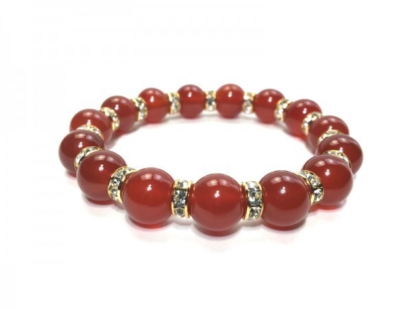 こちらは、12mm玉の赤瑪瑙を使用した天然石ブレスレットです。石との間にはロンデルを挟み高級感を演出しています。シンプルなデザインですのでどんなコーディネートとも合わせ易いブレスレットです。石大きさは12mm玉です。内径約18cmです。(サイズ変更の場合は取引ナビにてご連絡をお願いします。) 数に限りがございますので気になる方はお早めにどうぞ。