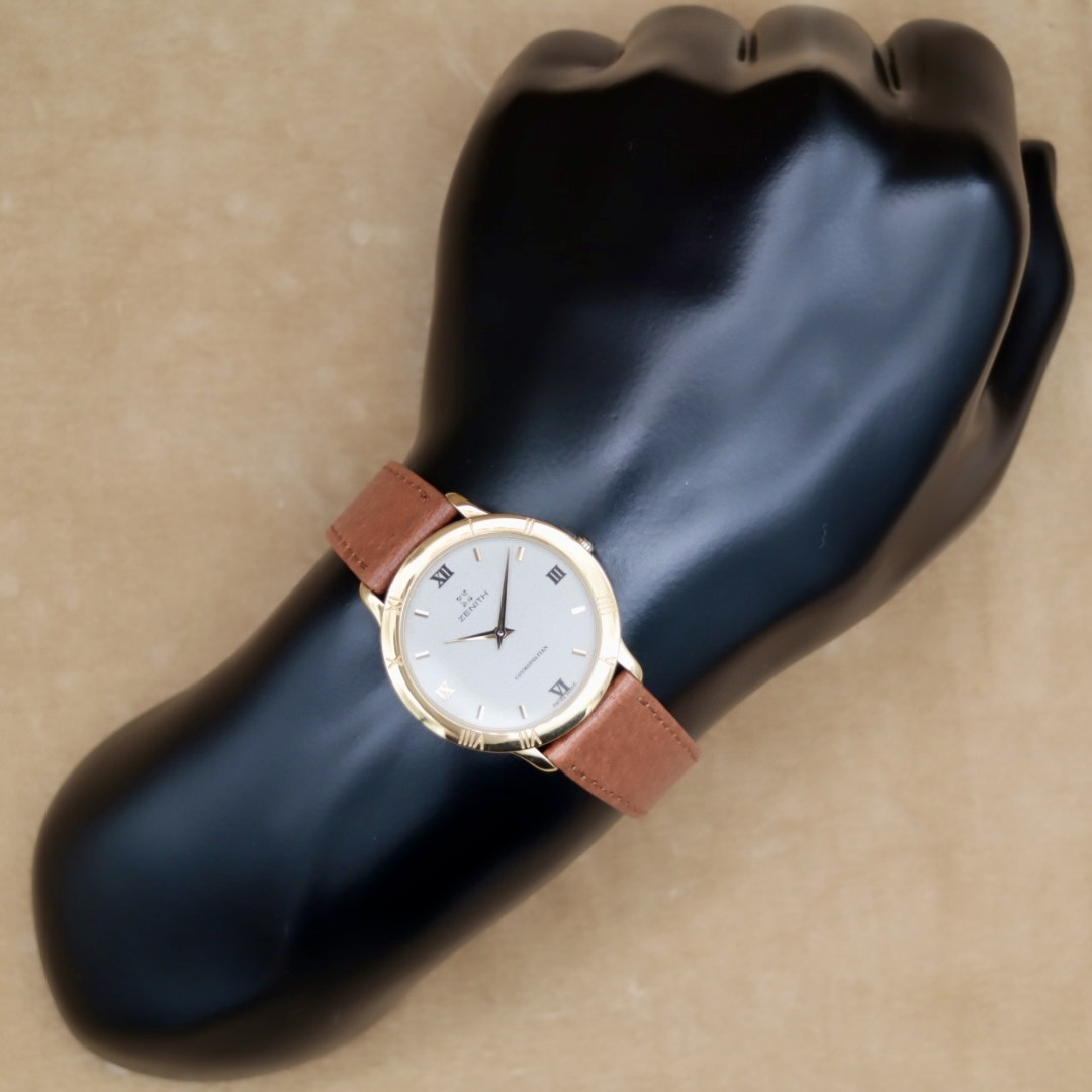 フォーマルにもカジュアルにも合わせやすい、洗練されたゼニスのエレガントピースです。