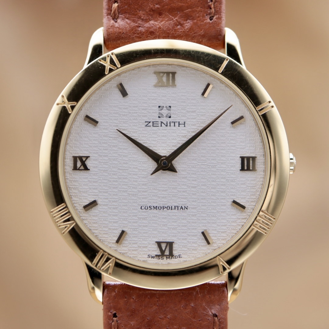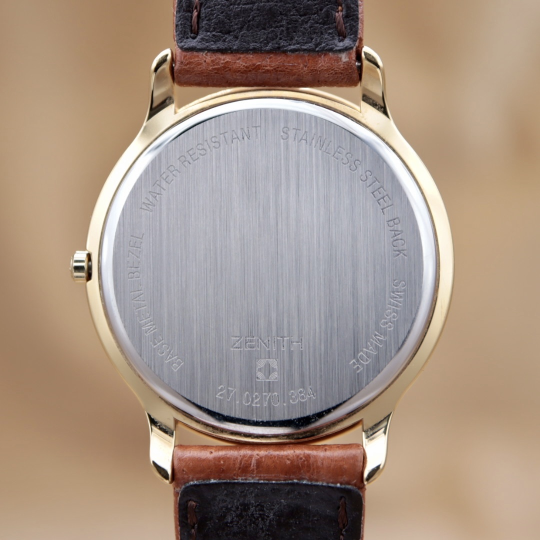 【希少】 ZENITH Cosmopolitan 27.0270.384 ゼニス コスモポリタン QZ クォーツ ゴールド 革 レザー ブラウン 箱・保 ドレス 2針