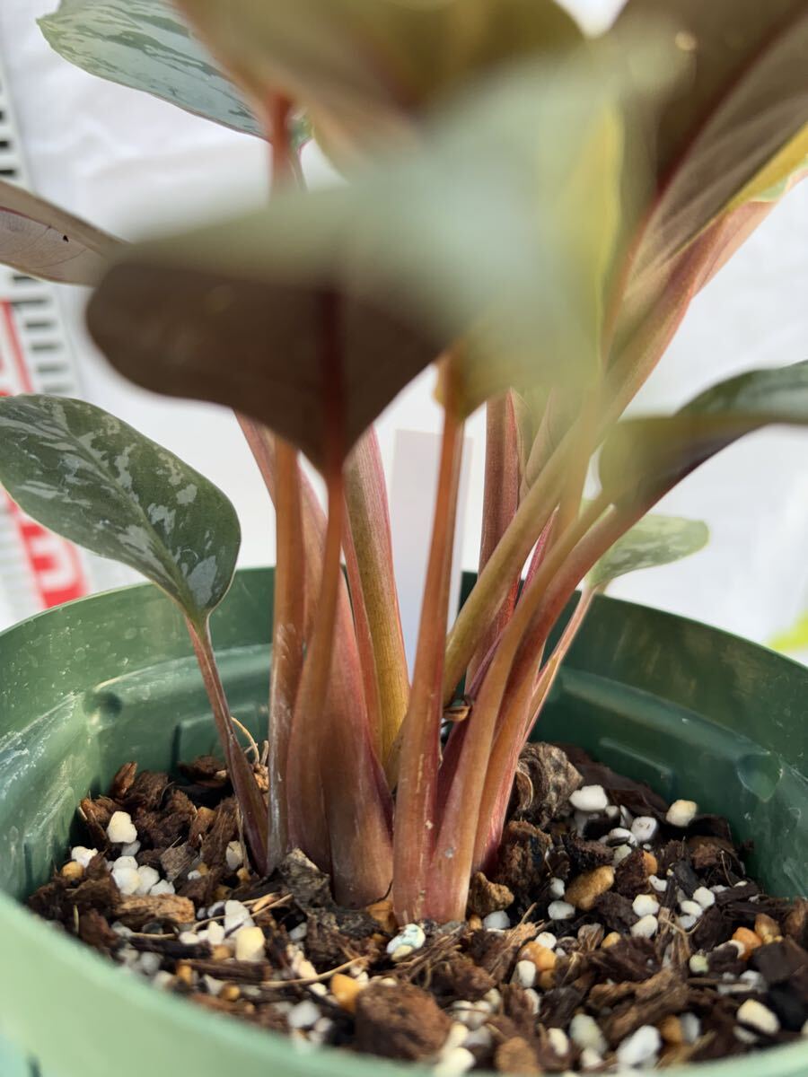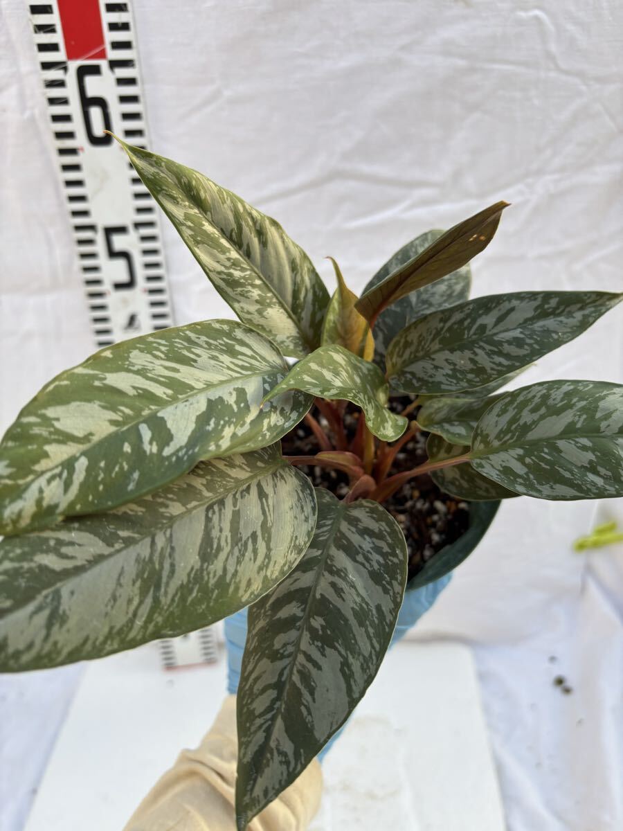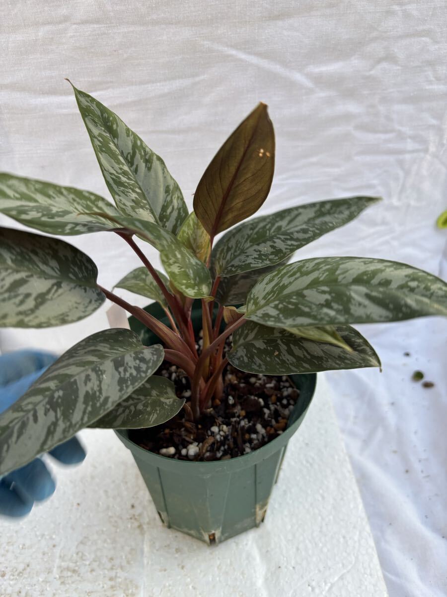 濃いグリーンにシルバー系の斑が美しい、サトイモ科の観葉植物アポバリス:アクミナティッシマです。バーガンディカラーの葉裏とのコントラストも美しいです。比較的湿潤な環境を好みます。アグラオネマと同じようなイメージの育てられます。質感、紋様が非常に美しいアポバリスの葉裏はカラテアの様にボルドー色でコントラストが美しいですが、質感が異なります。未だ日本ではメジャーな植物ではなく、あまり見かけない植物。