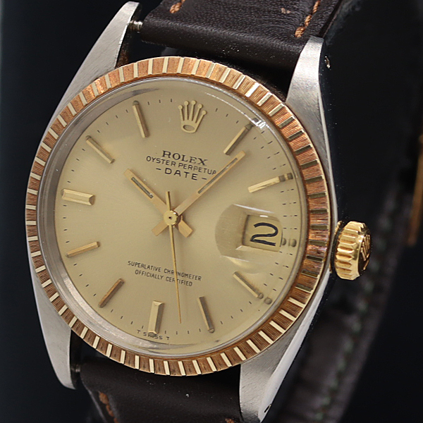 1円 稼働 ロレックス オイスターパーペチュアルデイト YG×SS 1505 2975387 AT/自動巻 ゴールド文字盤 メンズ腕時計 0508530 11PRT SMZ