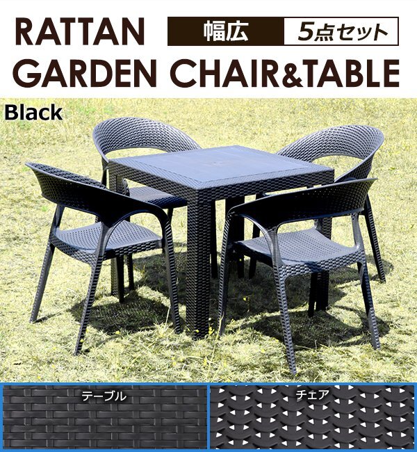 | 商品名 | 送料無料 ラタン調 ラタンテーブル ラタンチェア プラスチックチェア ガーデンチェア ガーデンテーブル 5点セット 幅広チェア テーブル幅約80cm UVカット 4脚 軽量 ラタン調ガーデンセット 庭 パラソル使用可 屋外用 PP rtntablet |