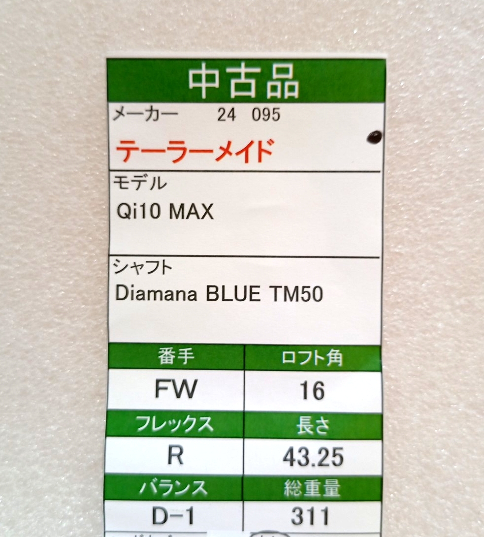 【即決価格】【FW】テーラーメイド/ Qi10 MAX/16度/ DiamanaブルーTM50/FLEX R/カバー無し