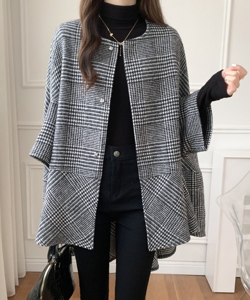 参考商品名:ビックシルエットチェック柄ドルマン ポンチョ